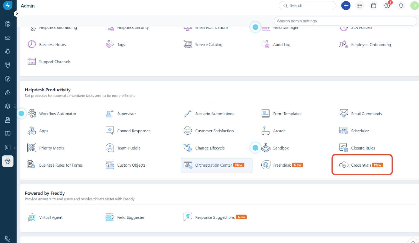 1. Navigate to Admin → Automation & Productivity → Credentials