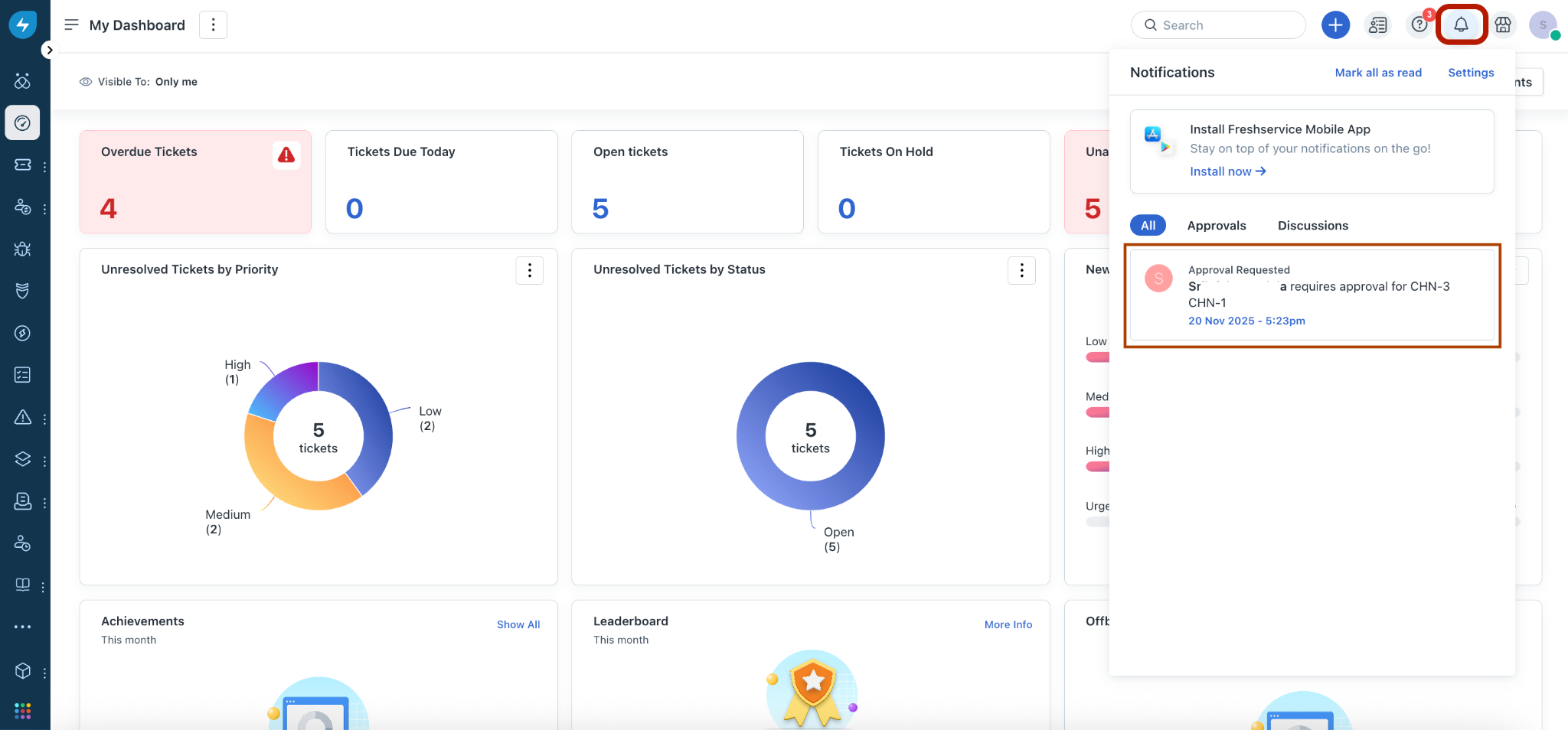 Or, click the Notifications icon at the top right corner (in Freshservice), and click the relevant notification to open the Change details page.