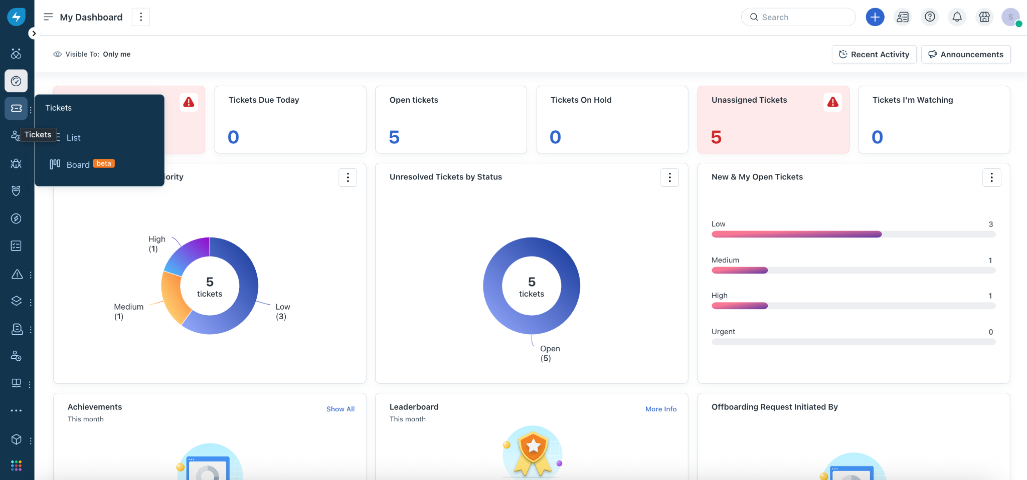 Go to Tickets > List.