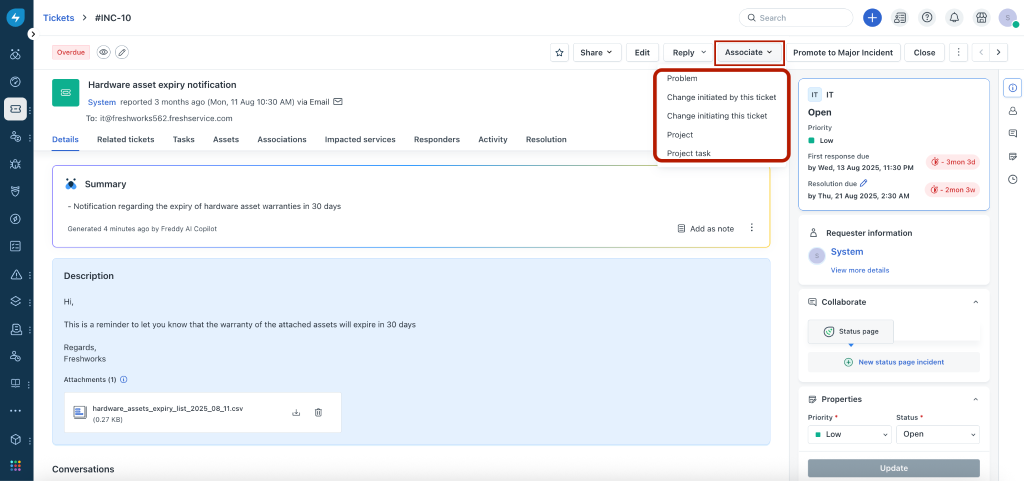 Following the change association, an email notification is also sent to the assigned agents.