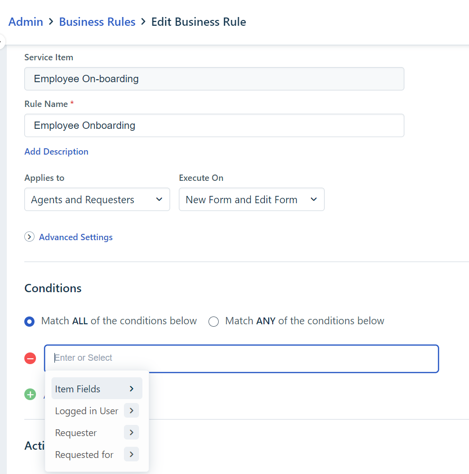 Business Rules for Forms lets you perform conditional actions on certain fields within a form with no code. This lets your users perform actions on certain fields, control ticket lifecycle, and implement field-level access on forms to ensure that only the right stakeholders can modify the contents of specific fields.