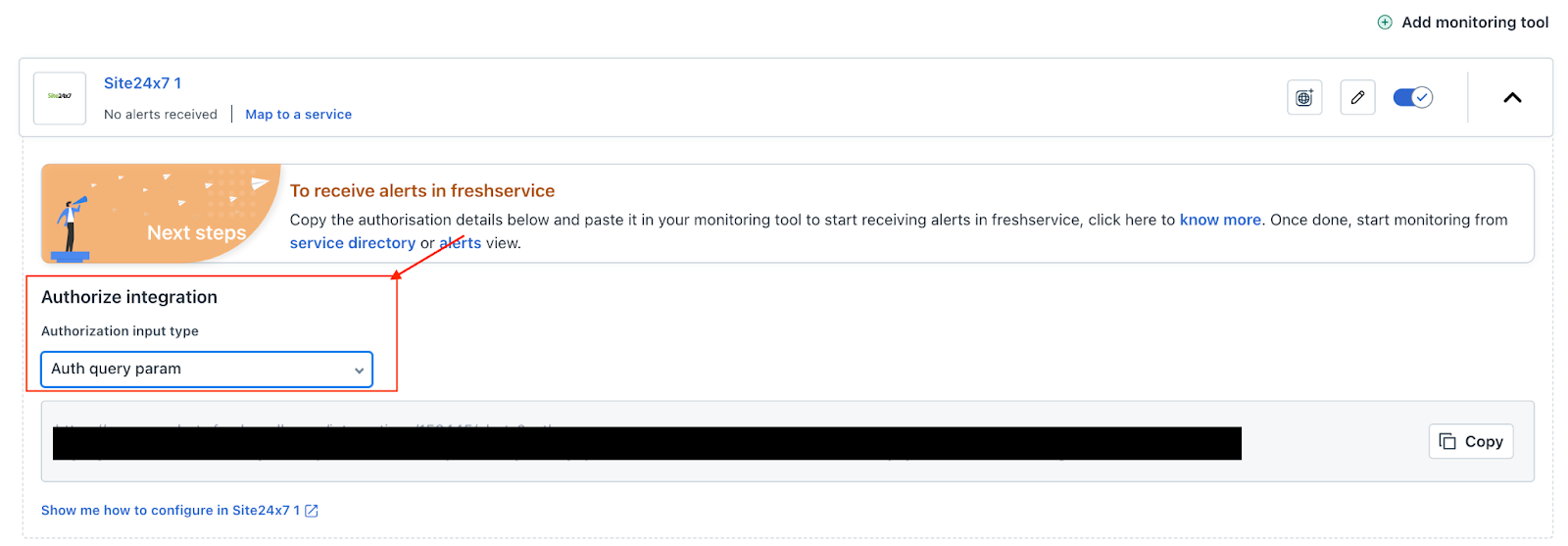 - Give your integration and a name and paste the Auth Param URL copied from Freshservice in Step 4 in the Hook URL field