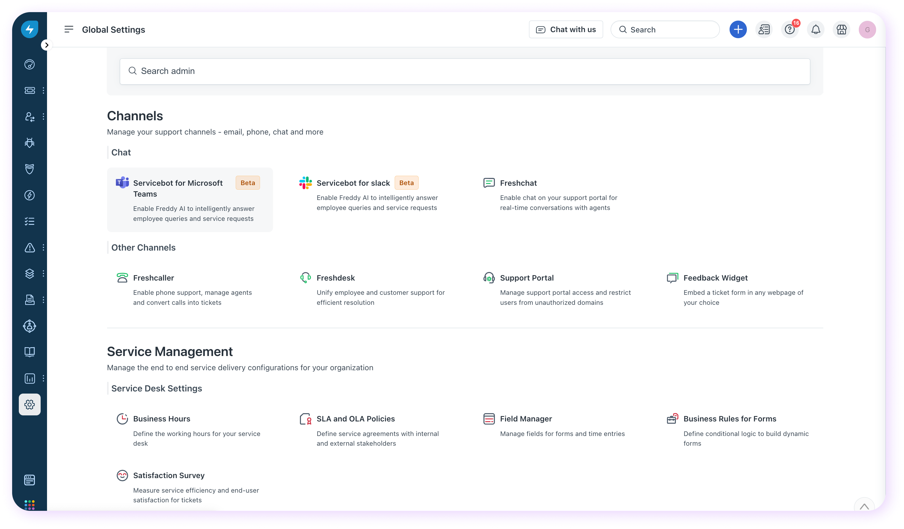 Freddy AI Agent: Manage channels on which you want Freddy AI Agent enabled for auto responses.