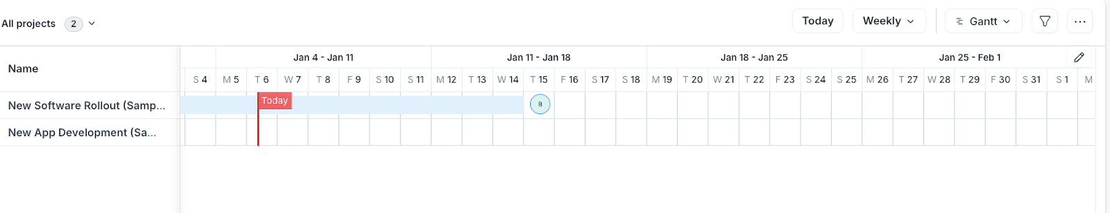 Your project is created. If you go to Project from the left menu, you can see the project on a liner timeline layout.
