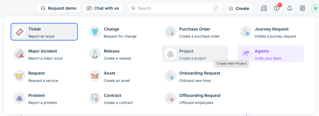 Follow the steps to create a project in Freshservice.