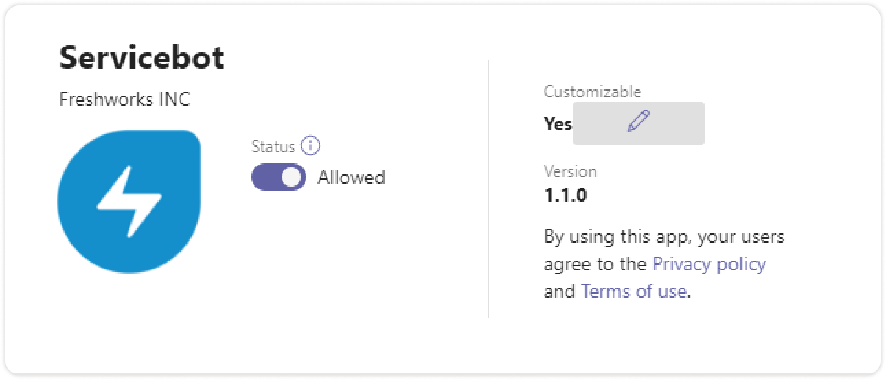 - Search for Servicebot from the list of applications and click the app's name to view details.