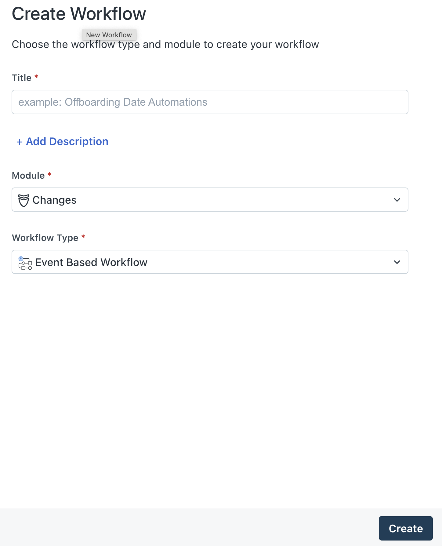The Create Workflow section appears.