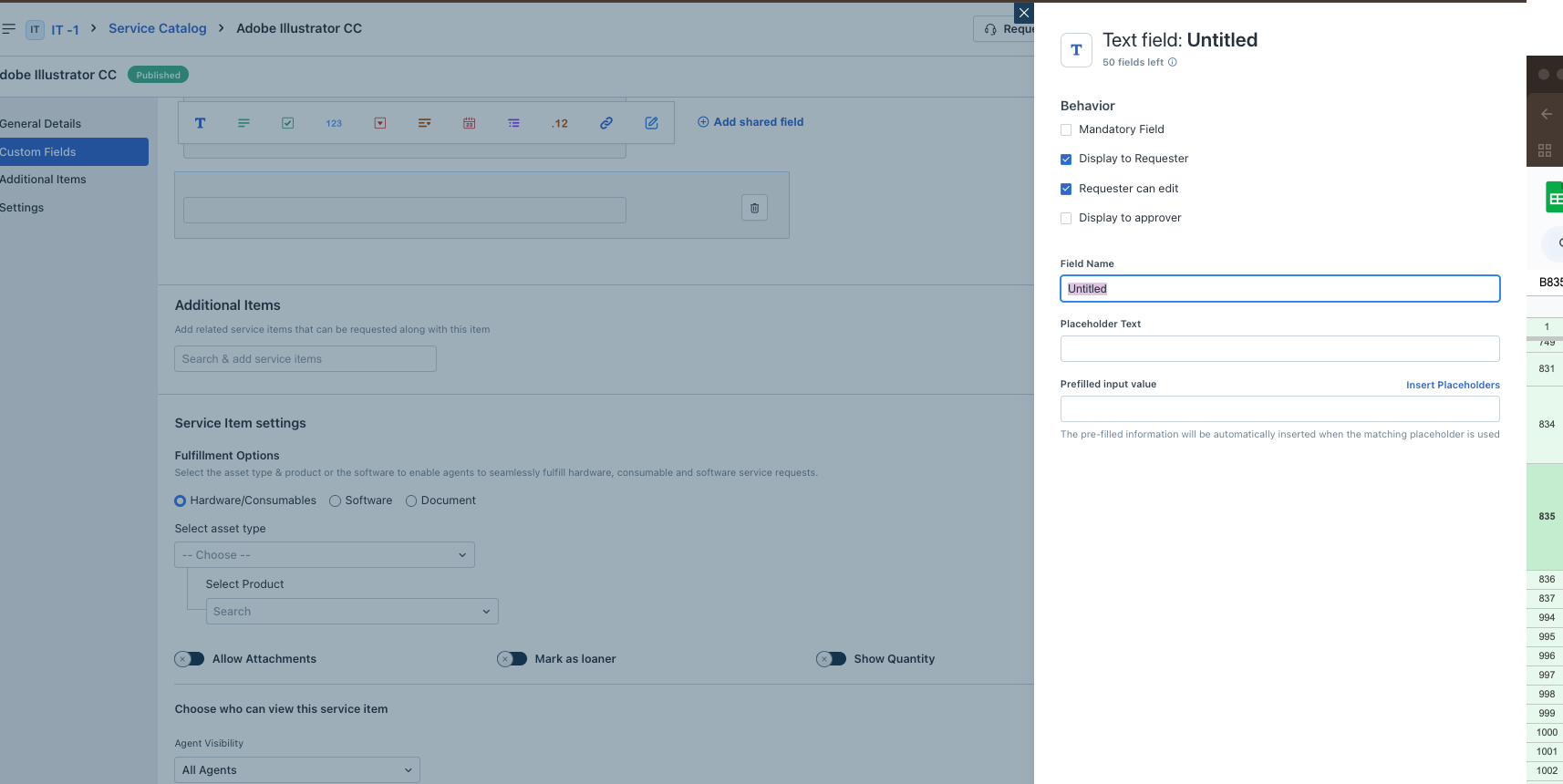 Step 3: Click any custom field. Ensure Display to Requester checkbox is selected to enable Requester can edit access.