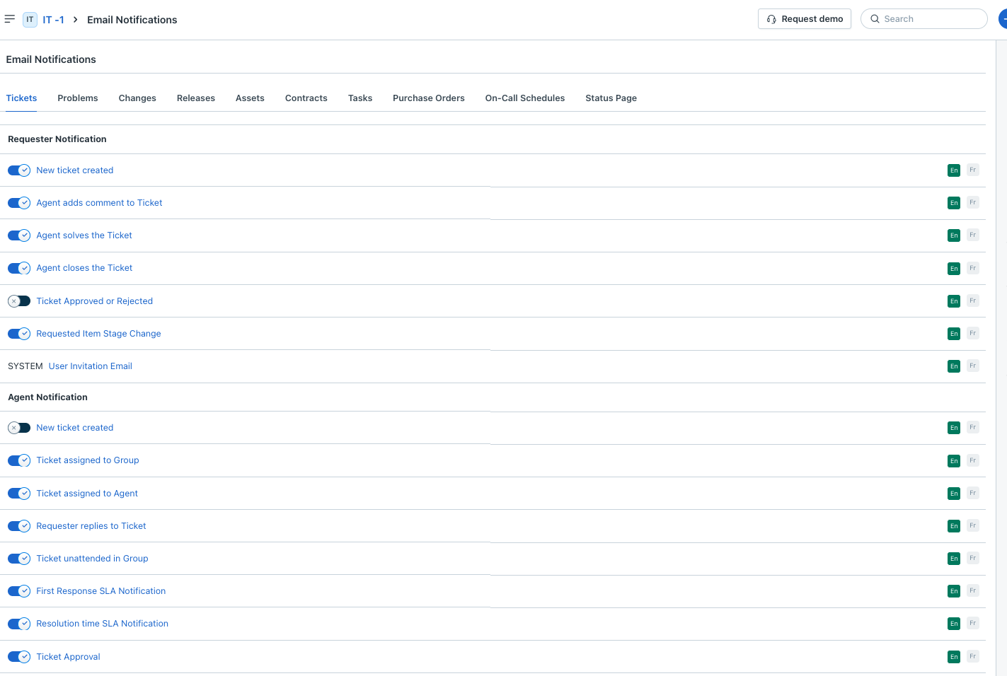 Step 1: Go to Admin > {Workspace name} > Email Notifications > Tickets > Requester Notification. Enable Ticket Approved or Rejected.