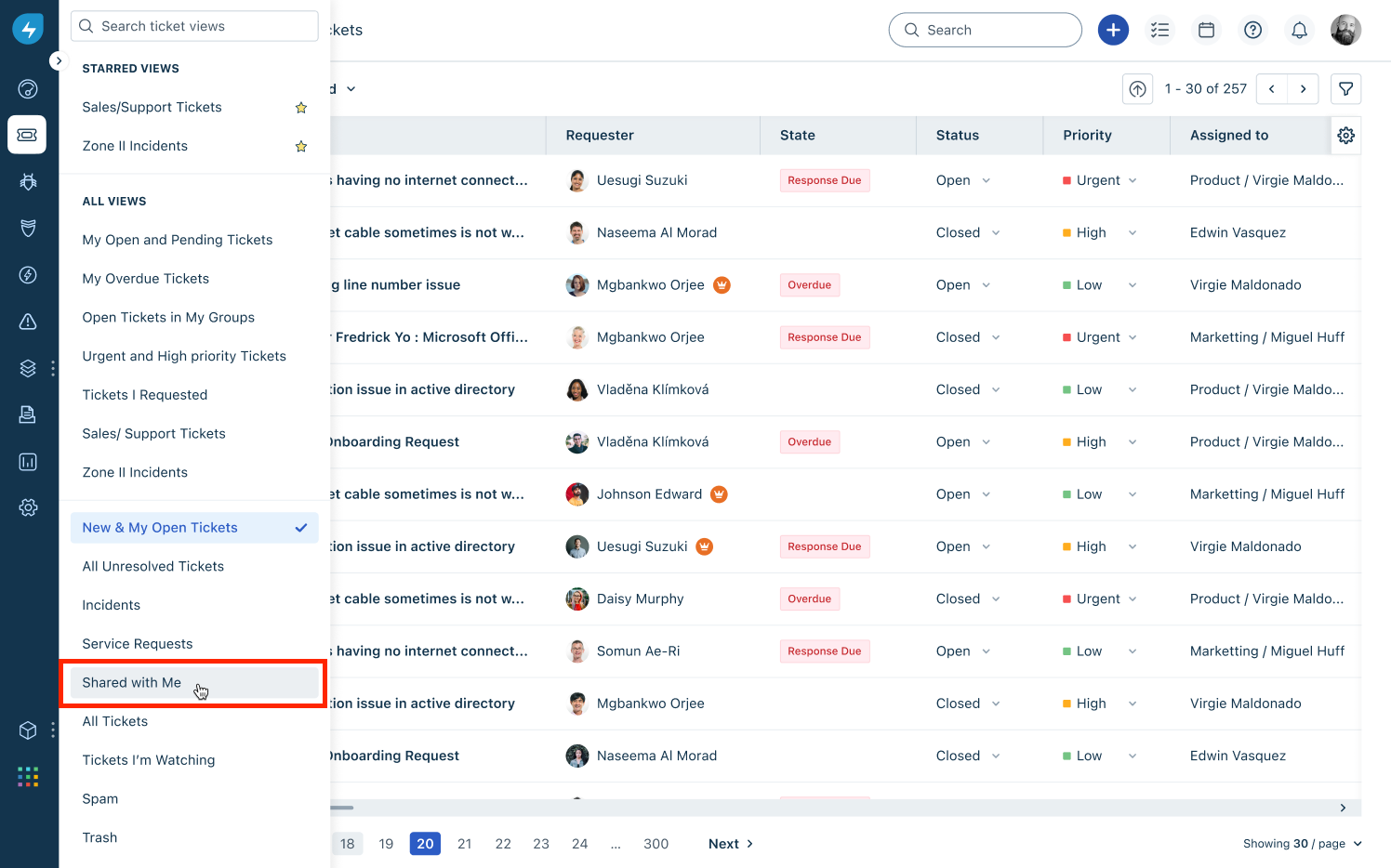 Note: For information on sharing tickets on the requester portal, see Share Ticket with Requesters.