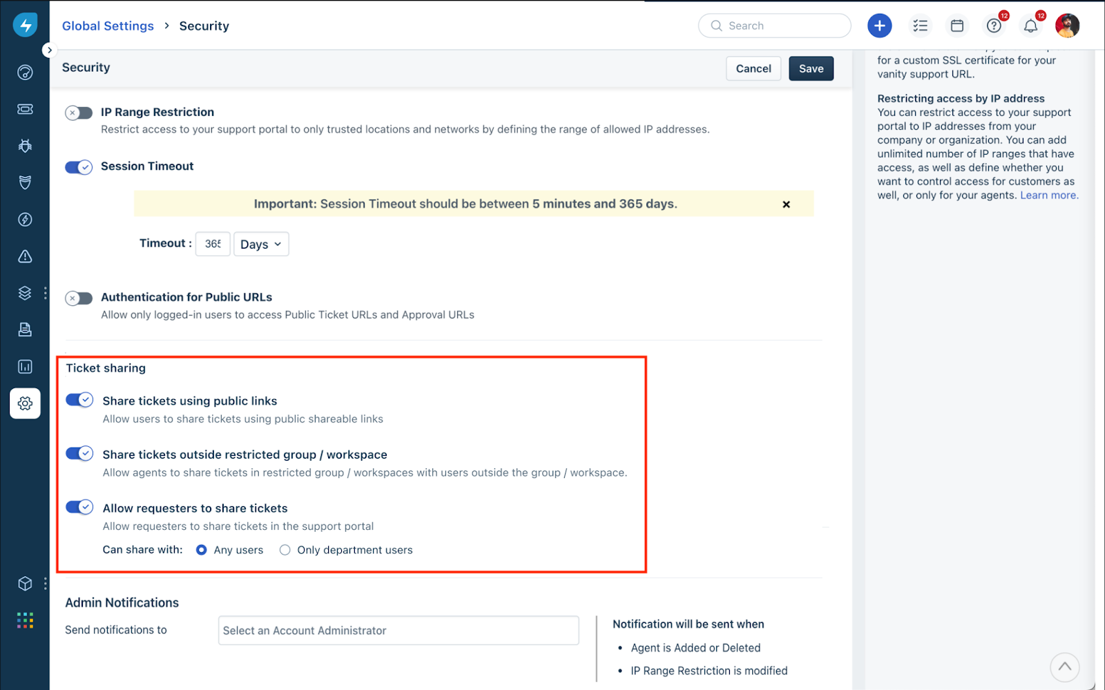 Facilitate seamless collaboration between agents and requesters by enabling ticket-sharing capabilities, and configuring ticket sharing settings to effectively share tickets with agents and requesters.