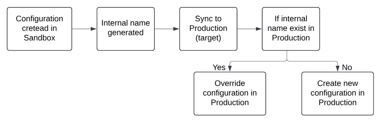 This article explains how syncing works between Sandbox and the target (Production), focusing on the key factors that influence this process, including the role of the internal name and how it impacts configuration creation and syncing.