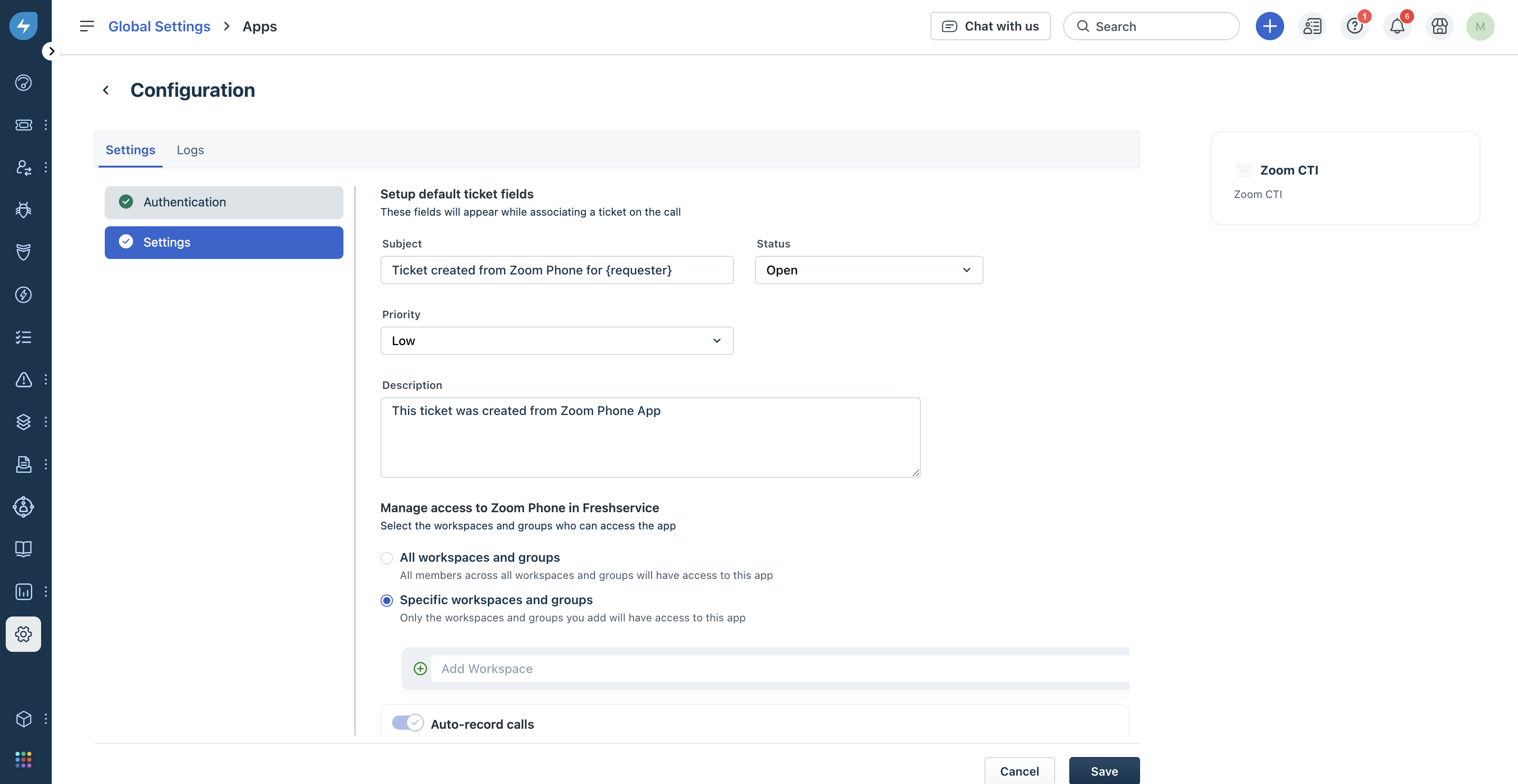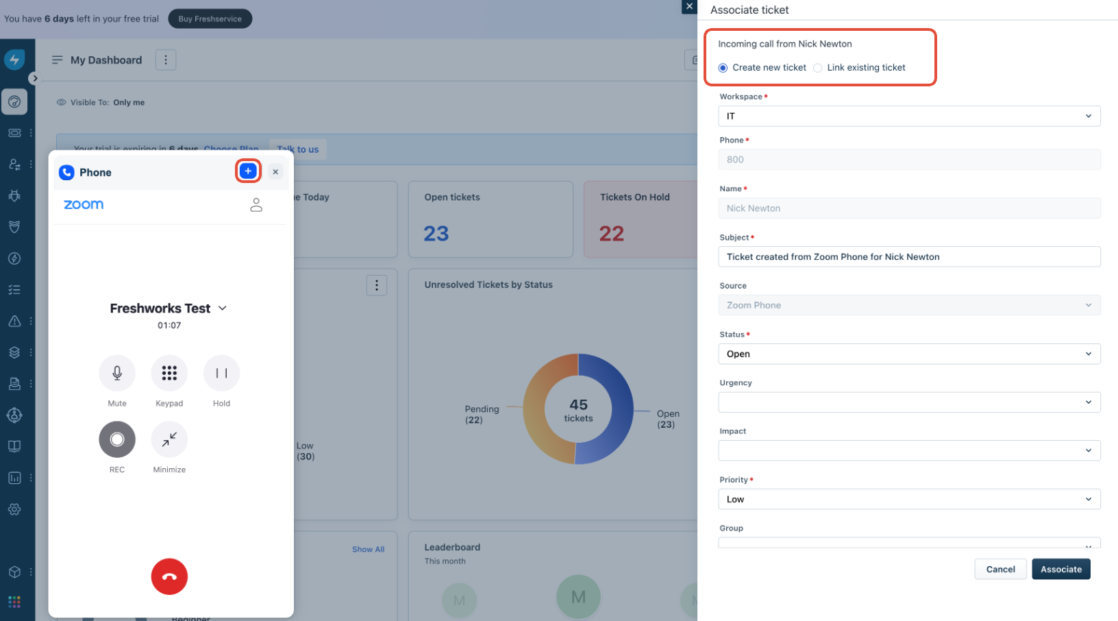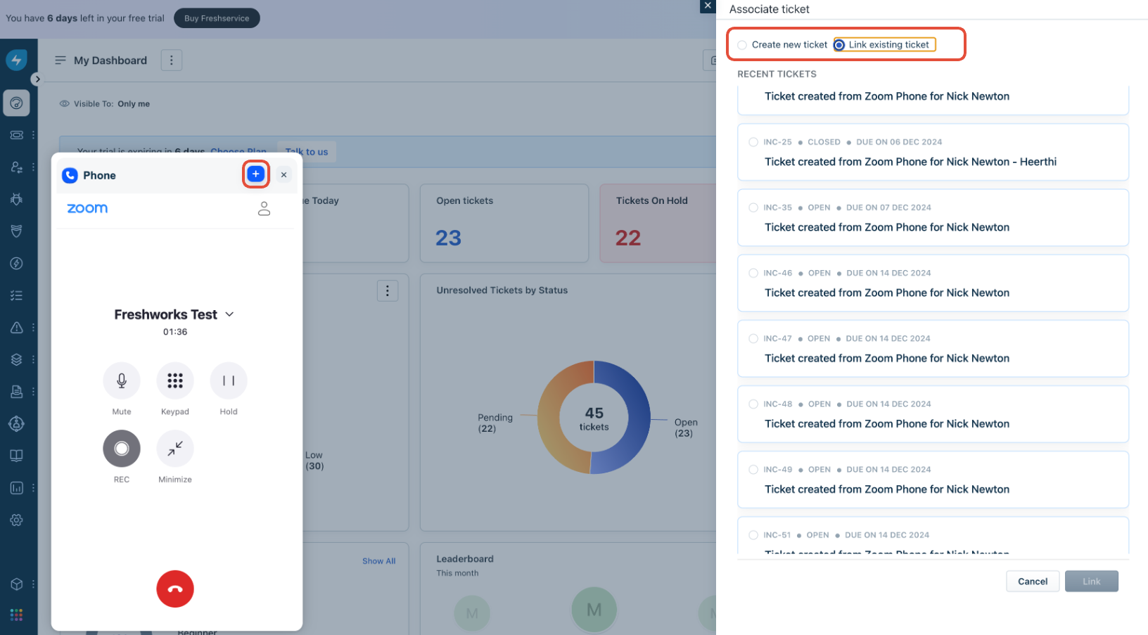 The Freshservice integration with the Zoom Phone CTI app offers an all-in-one solution for efficient call management, ensuring every employee interaction is logged and accessible within Freshservice.