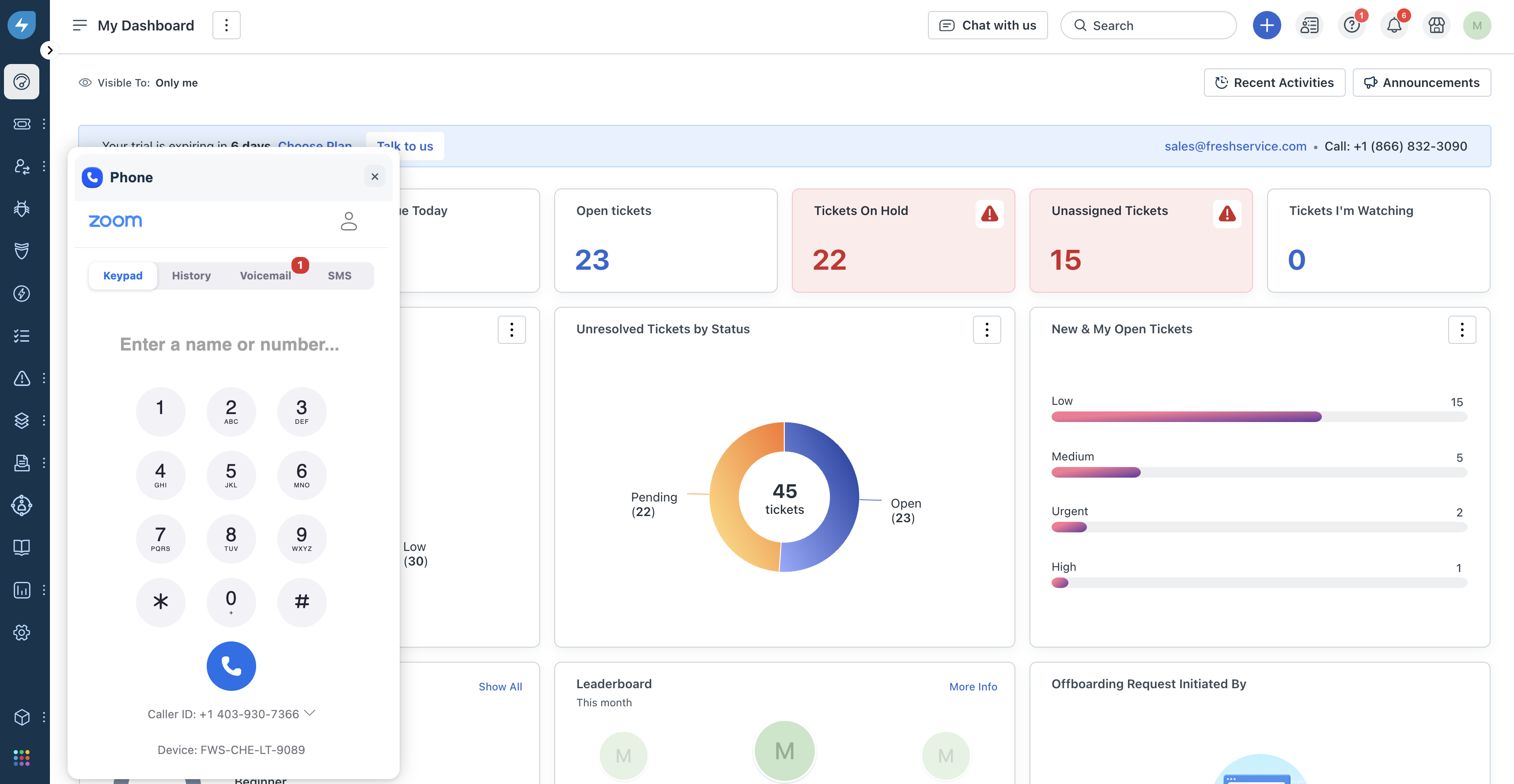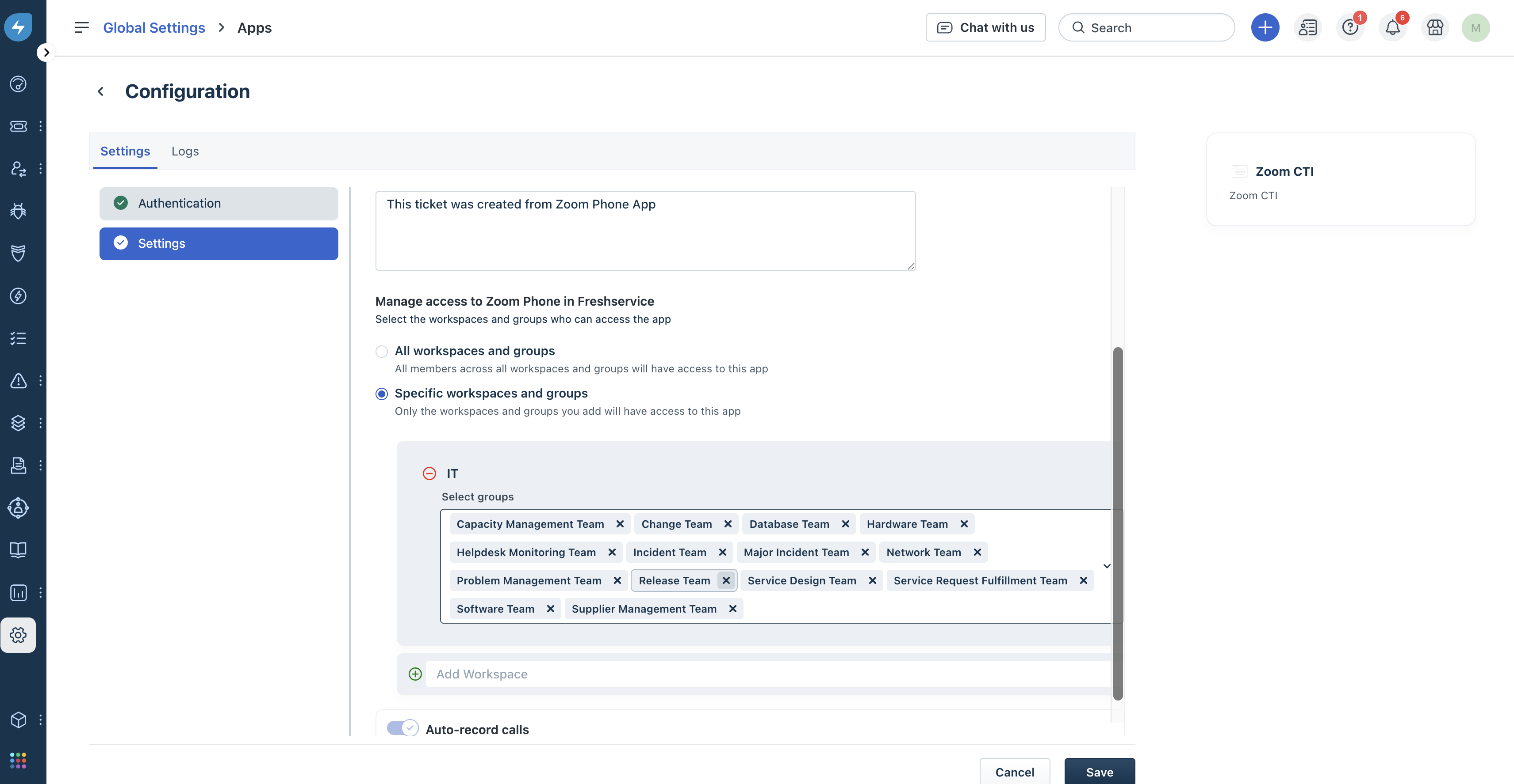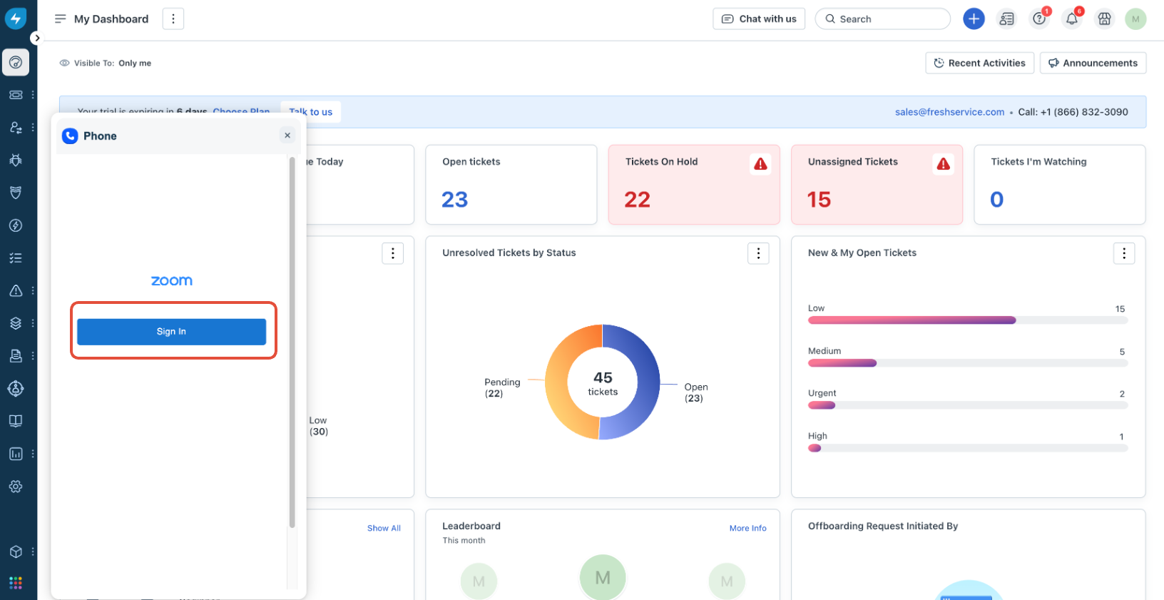 The Freshservice integration with the Zoom Phone CTI app offers an all-in-one solution for efficient call management, ensuring every employee interaction is logged and accessible within Freshservice.