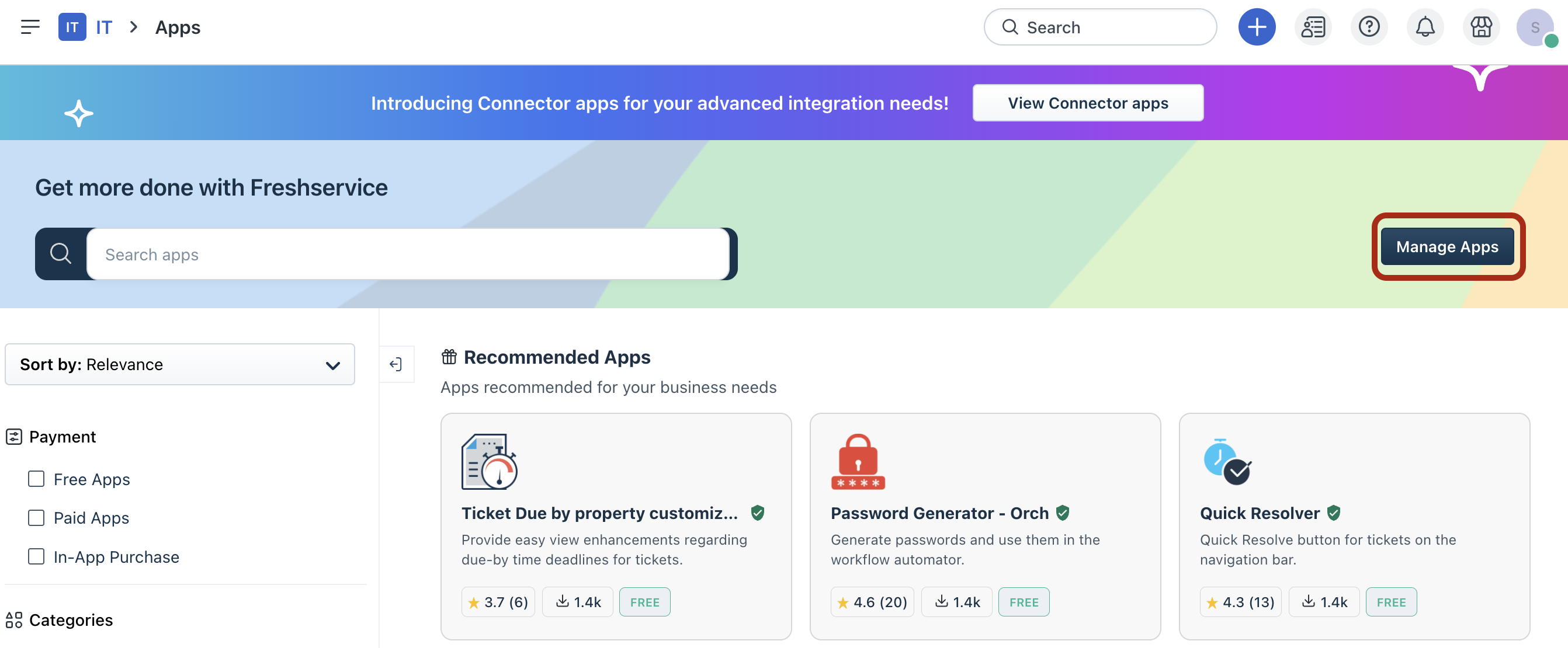 2. Click Manage Apps.
