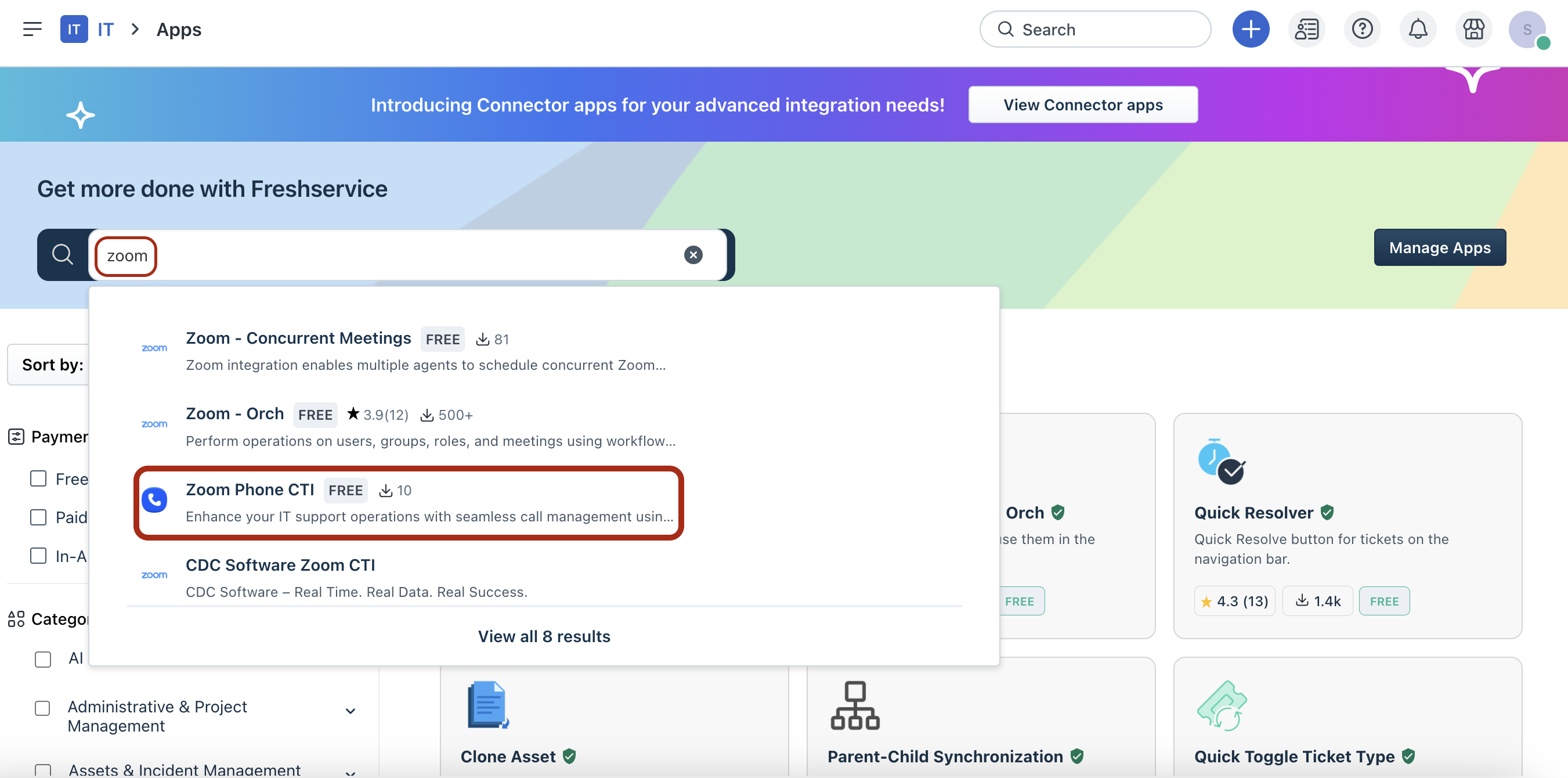 2. Search and select Zoom Phone CTI using the Search apps option.