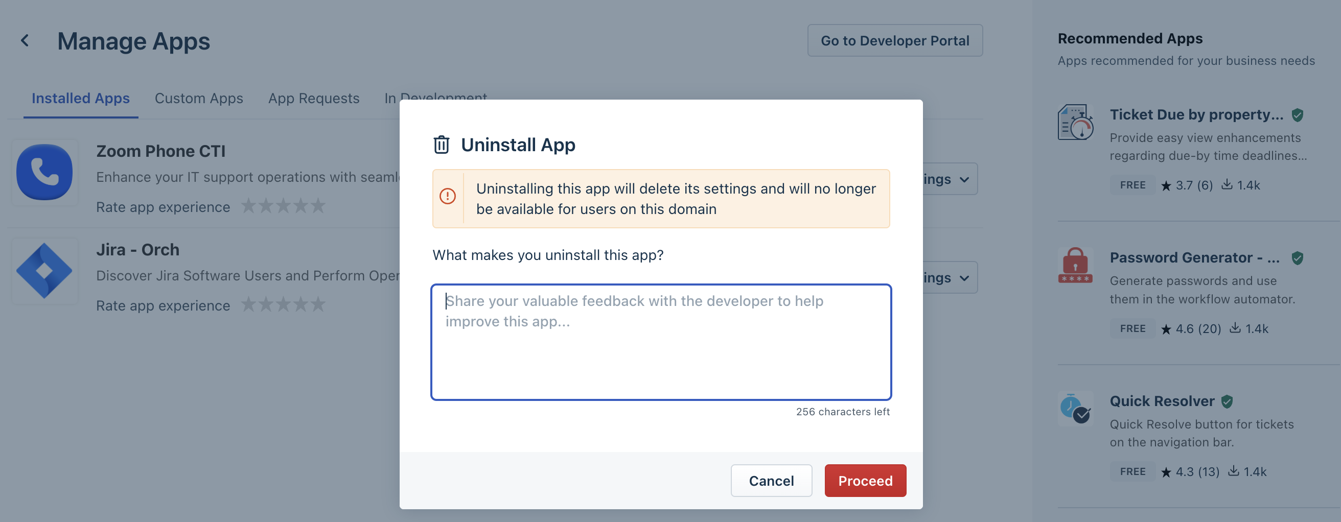 4. Enter any relevant reason for uninstalling the app. Then, click Proceed.