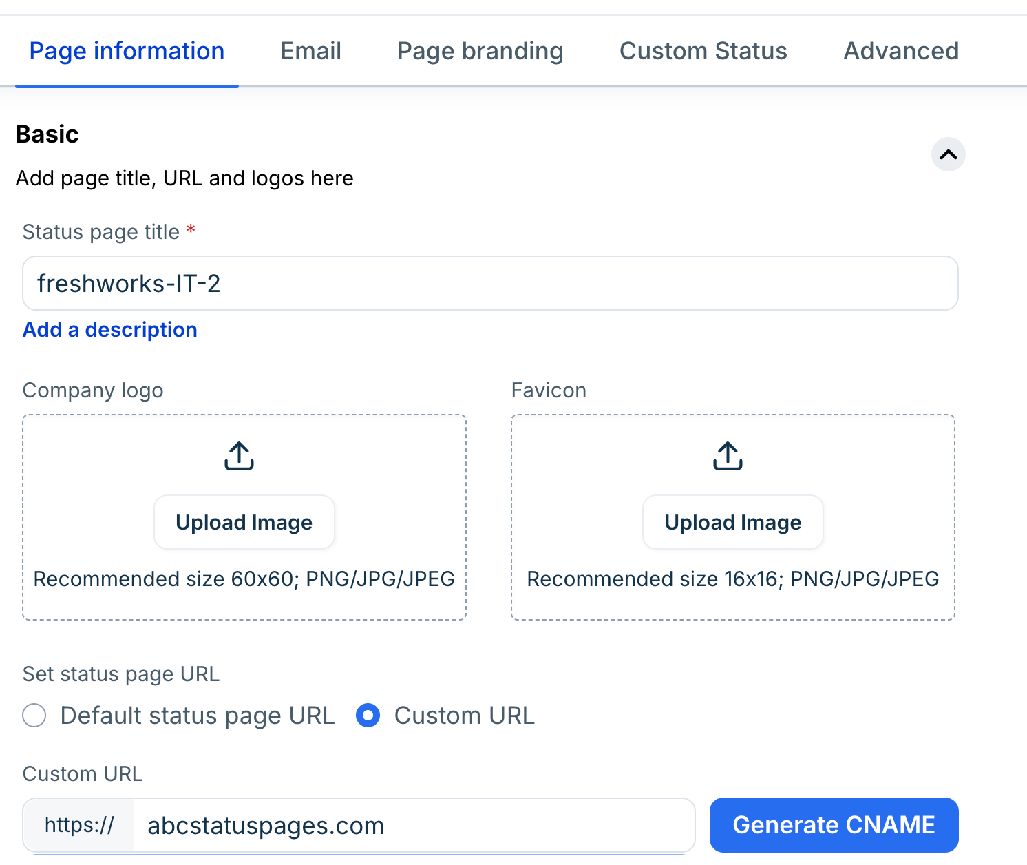 Enter your Freshstatus Status page URL in Freshstatus Status page URL field.