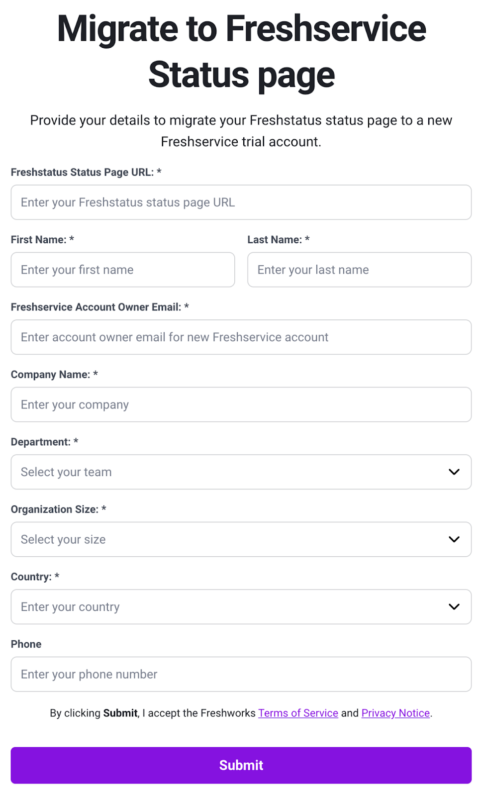 Migrate Freshstatus page to Freshservice without an existing Freshservice account