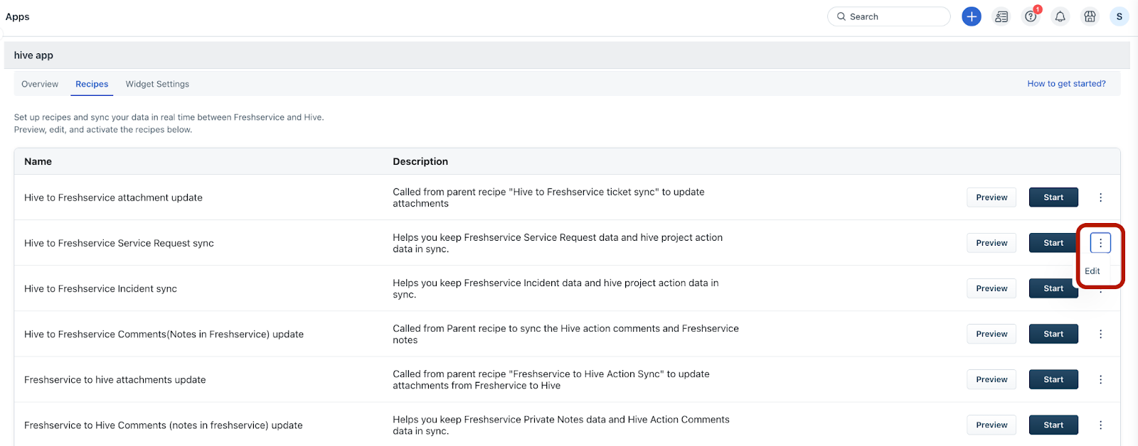 Default recipe: Hive to Freshservice Service Request sync