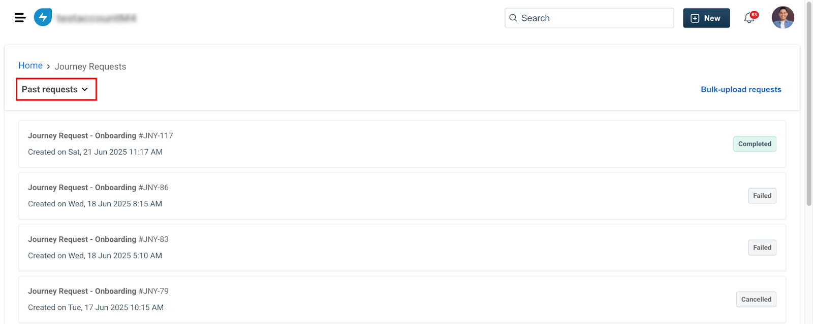 Alternatively, you can click the Journey requests tab at the bottom of the support portal home page to view all your initiated journey requests.