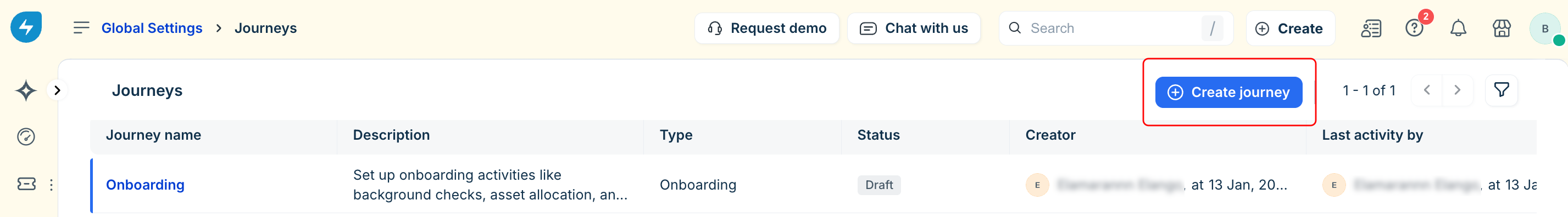 You can create journeys to support use cases across multiple departments based on your specific requirements. To better understand the Journey creation process, let’s take an example from HR—employee onboarding. In this journey, you will define stakeholders, structure the process into phases, and assign activities to each stakeholder, such as the Initiator, New Hire, and Journey Request Manager.