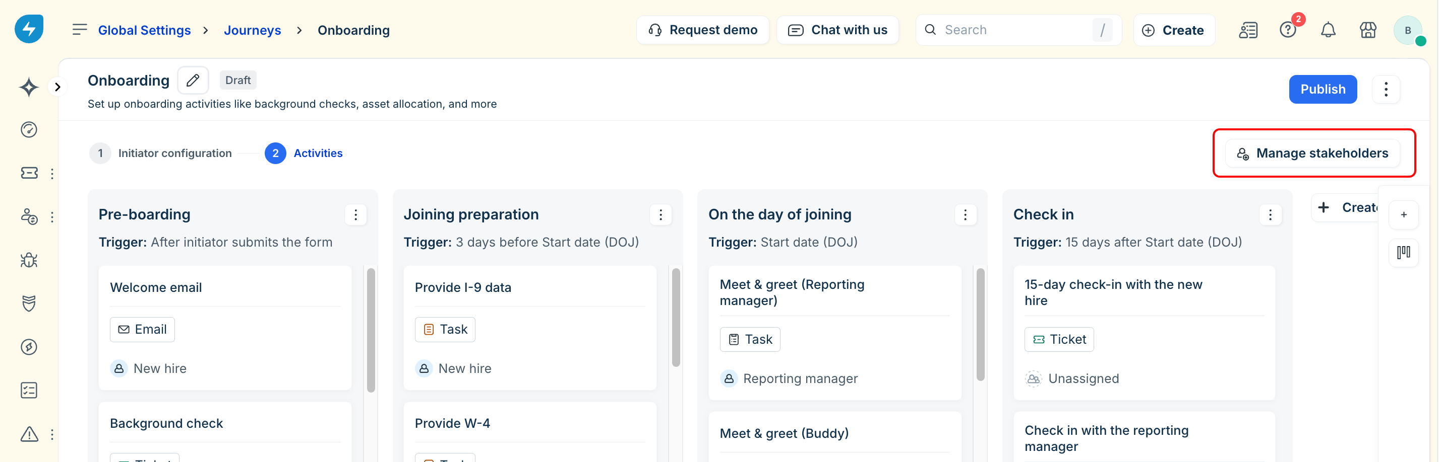 Note: You can do this at any time in the journey configuration; however, we recommend configuring stakeholders beforehand so that activities can be assigned to them appropriately.