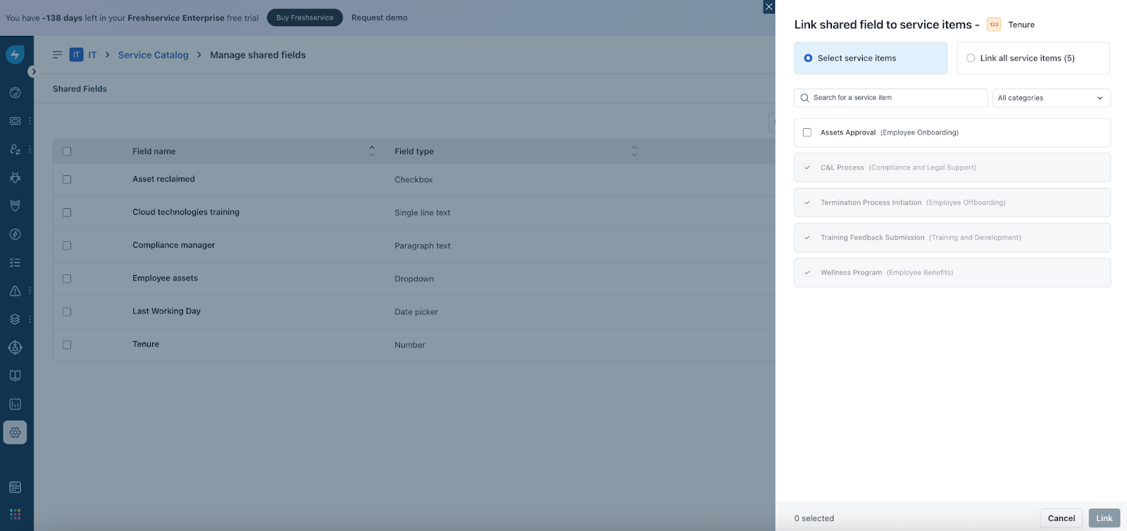 Or, select Link all service items to link this field with all the service items irrespective of the service category.