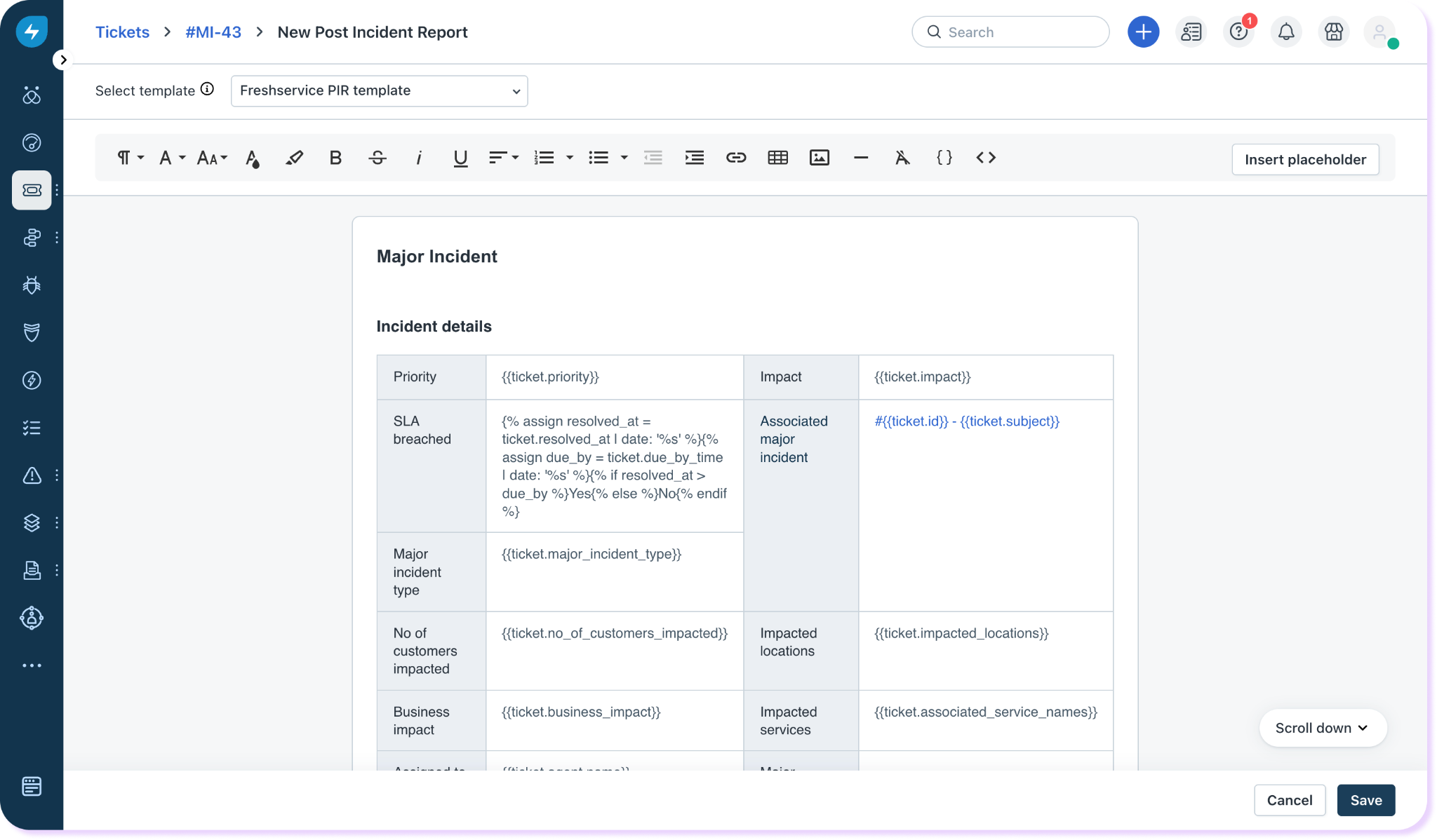 Automate approvals for post incident reports in Freshservice and maintain a chain of approval before a post incident report is published. This helps maintain compliance across the organization.
