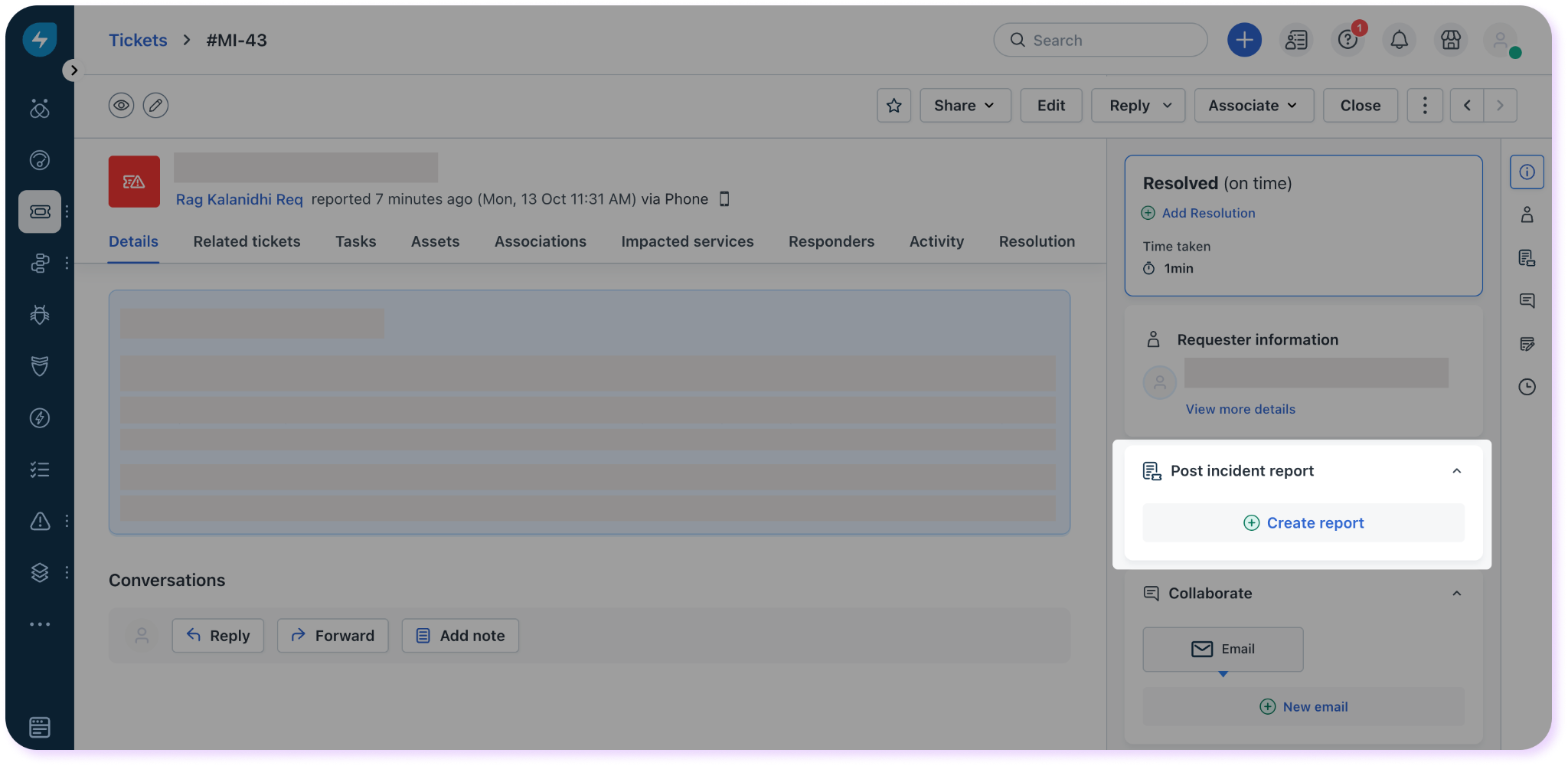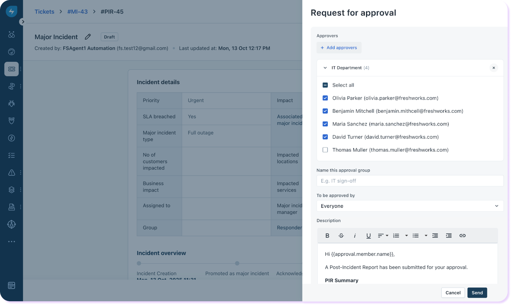 Users can create a PIR from the ticket of a major incident and send it for approval. Here’s how: