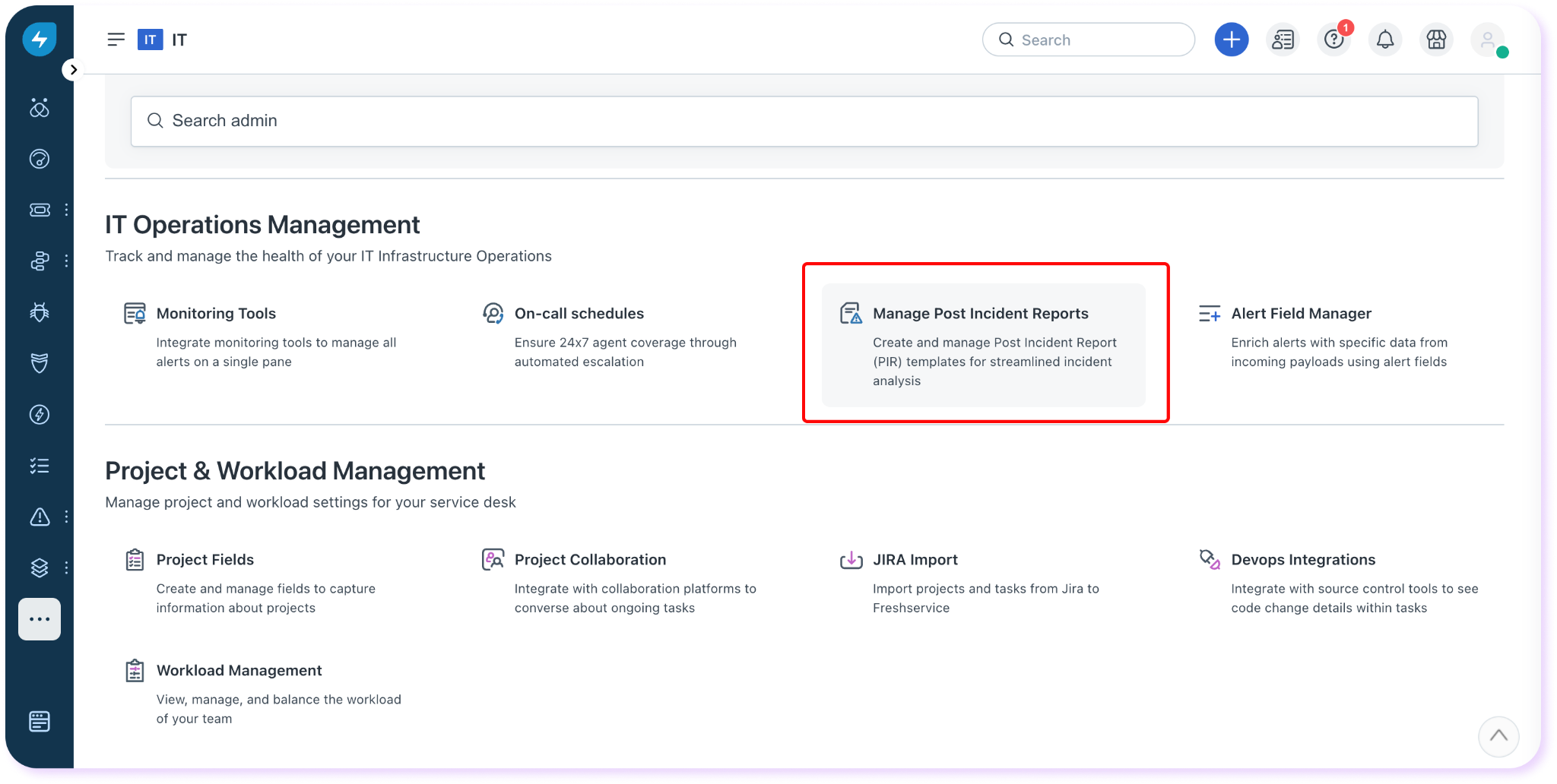 Go to Admin Settings > IT Workspace, and click Manage Post Incident Reports.