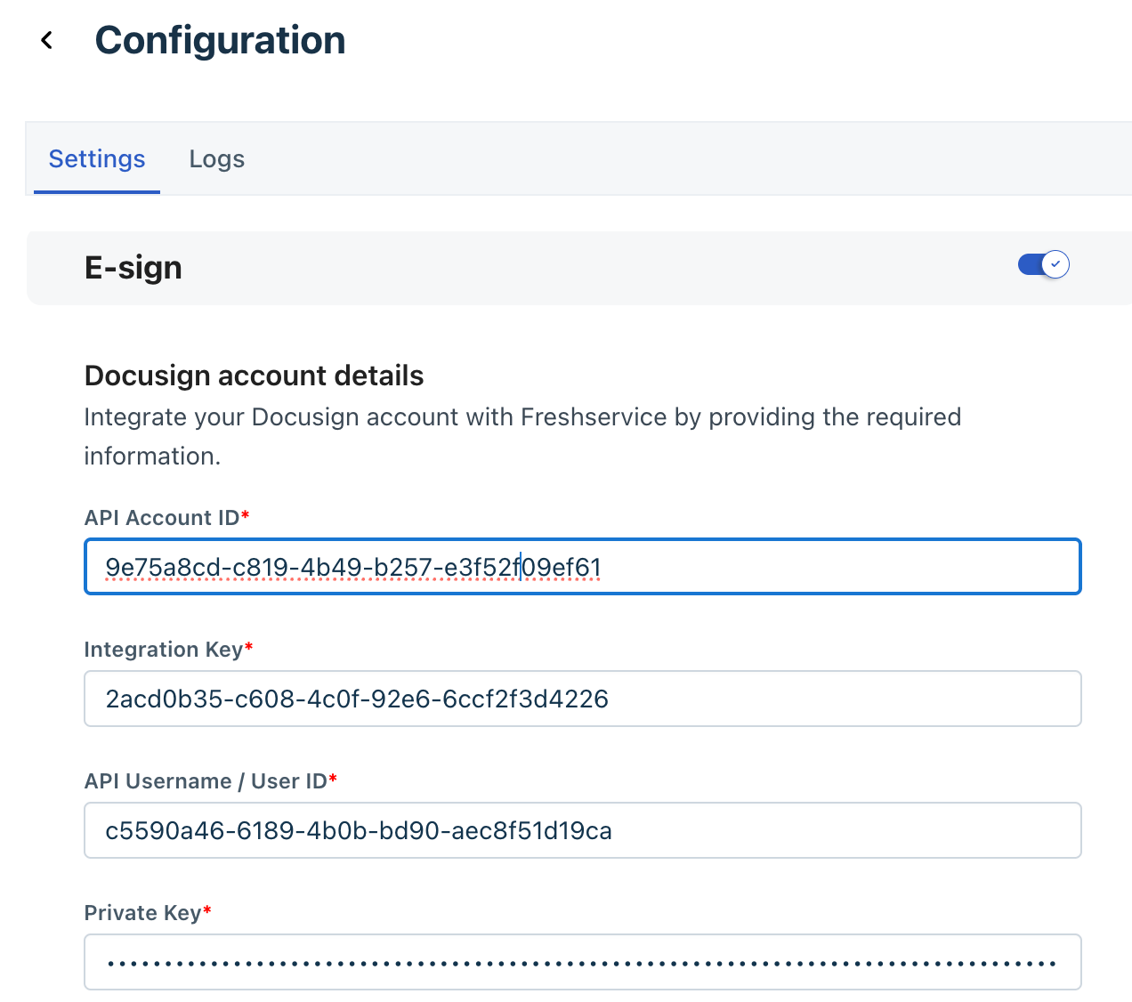 Esign settings - Link your Docusign account to enable seamless e-signature workflows for document templates. In Freshservice document templates, you can now add signatures and ensure automated document and signing workflows. This article describes how you can add the signatures to document templates.