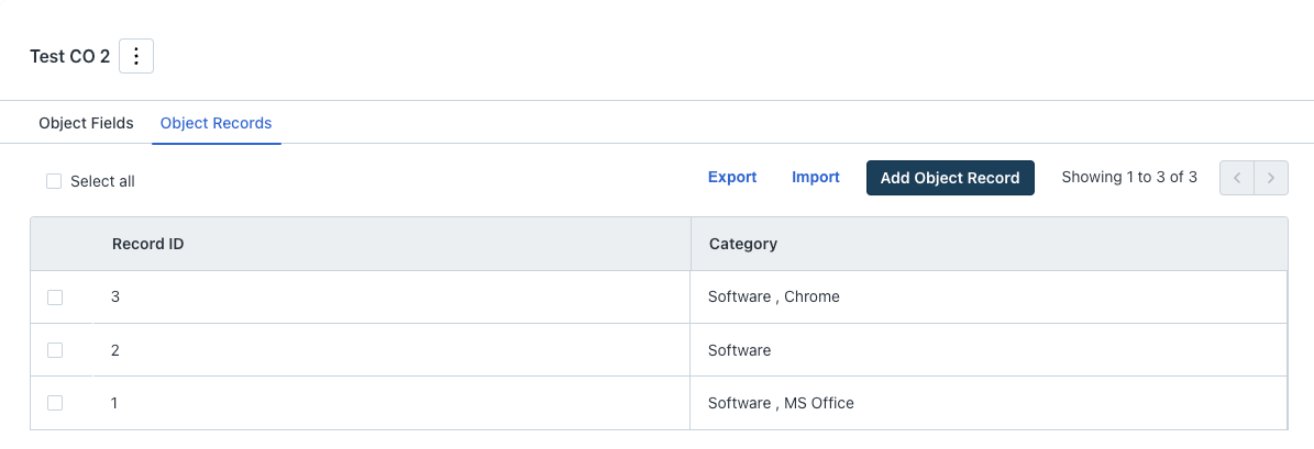 In this case, all the custom object records matching the Level 1 as ‘Software’ are fetched, and then the first record is returned (based on the sort_by condition and the sort order defined in the reader node).