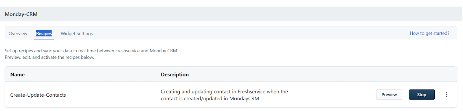 The following default recipes are available with the Freshservice and Monday CRM Connector integration.