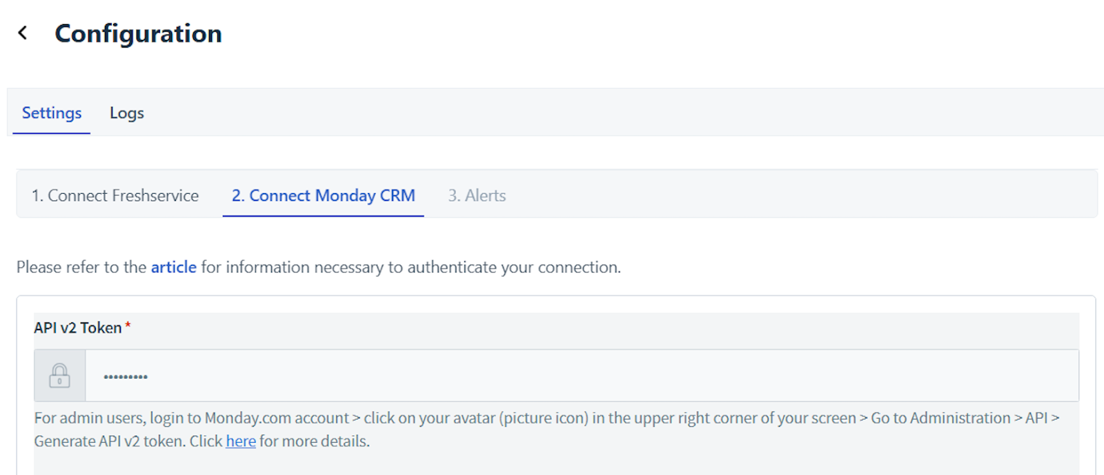 Click Monday CRM Connector App. The Configure Monday CRM Connector dialog opens.