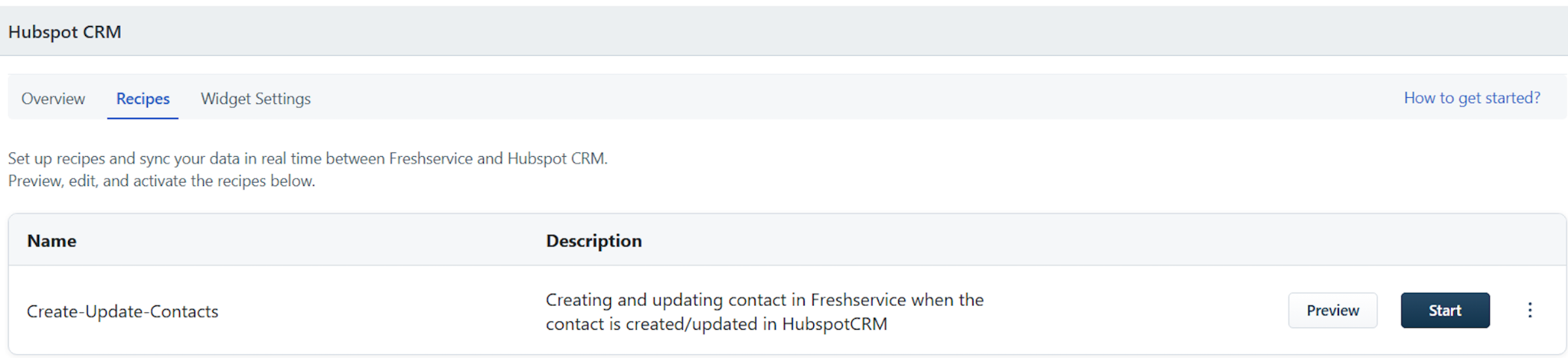 The following default recipes are available with the Freshservice and Hubspot CRM Connector integration.