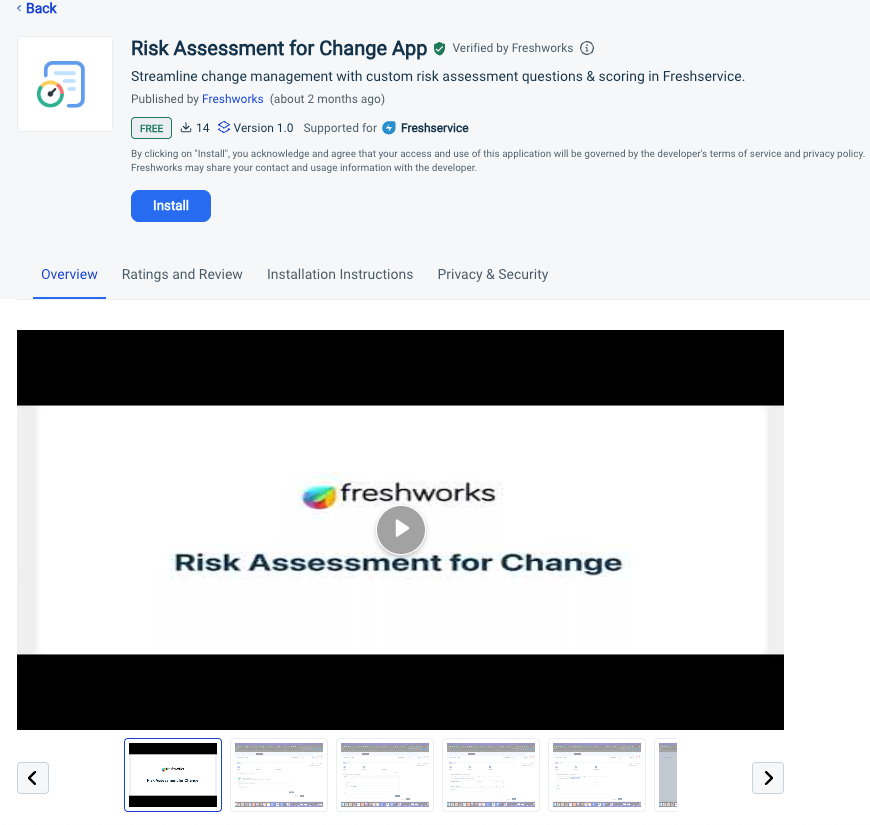 Or, you can go to Freshworks Marketplace, search for the Risk Assessment for Change app, and install it.