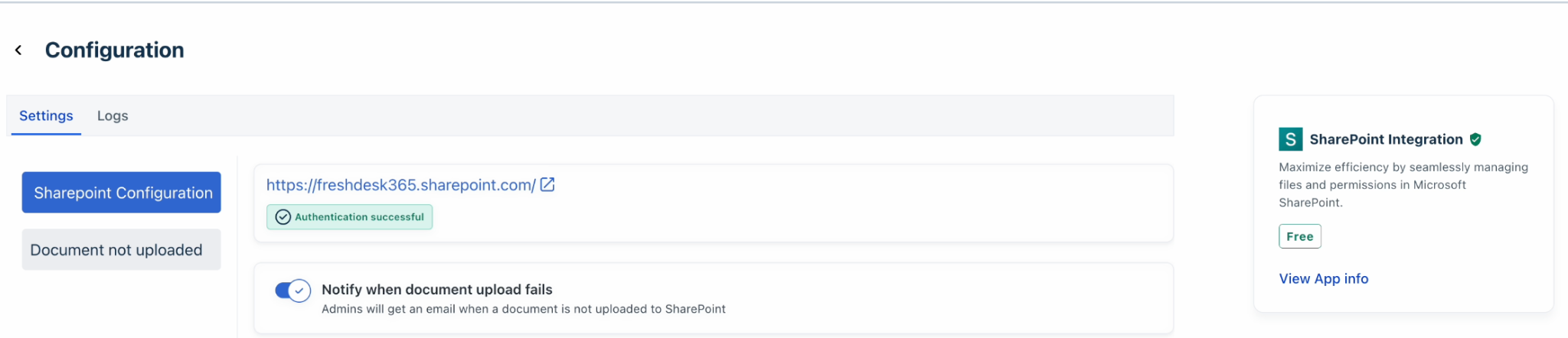 The SharePoint Integration for Freshservice allows you to automatically push documents generated from your tickets into specific SharePoint folders. This ensures that all your employee contracts, verification letters, and other essential documents are securely stored and organized in your central repository.