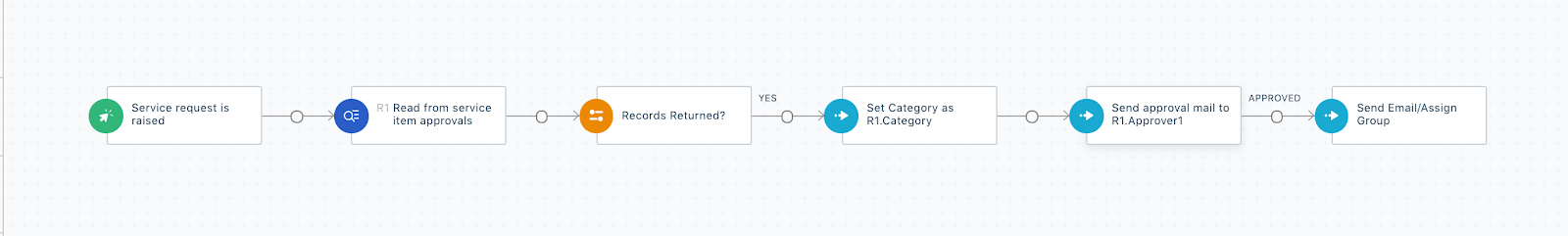 For example, if a service request was raised requesting for a Macbook, the reader node can read the record from the business object by matching the service item information, and returns the right agent groups and approvers to route the request to.