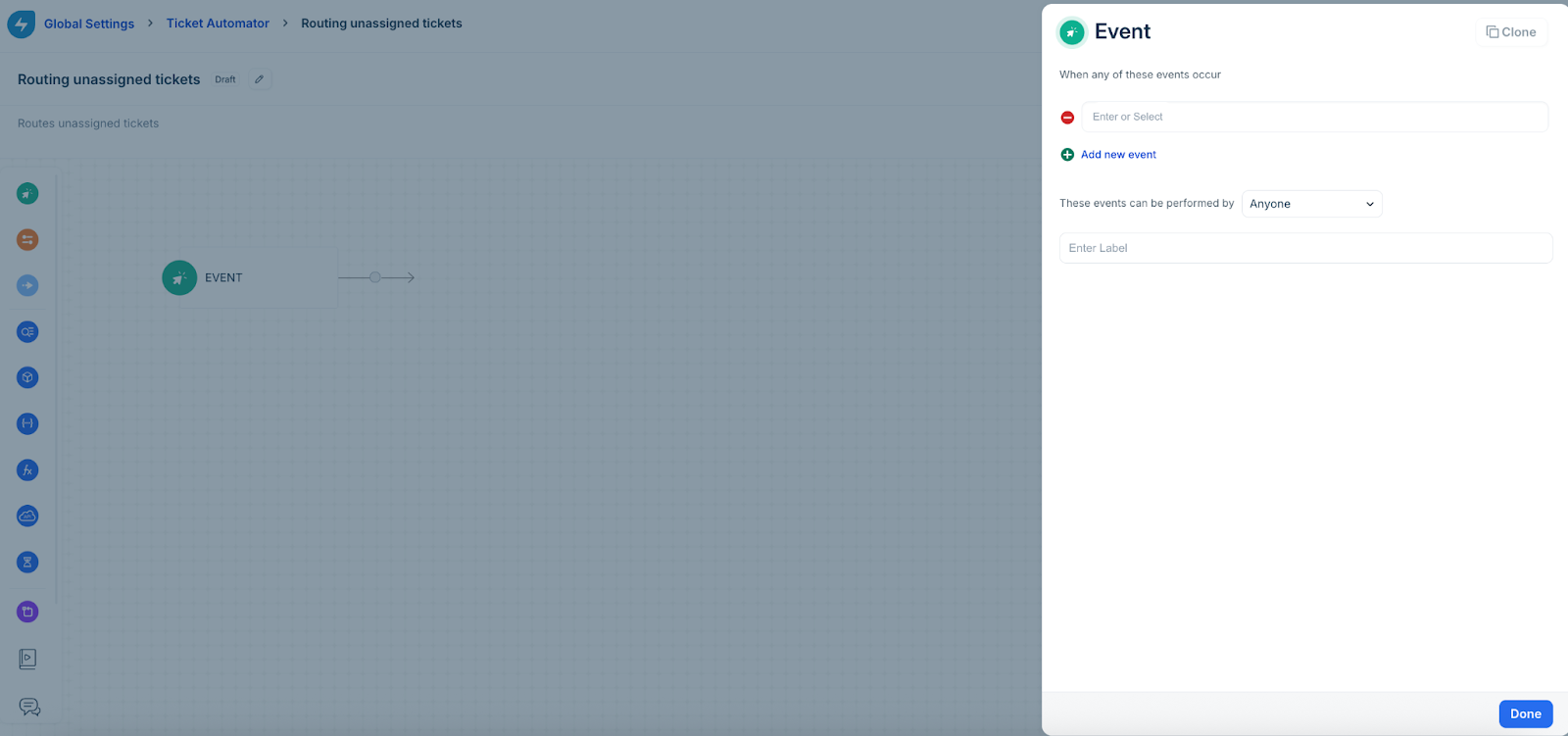 Is it possible to add more than one event in automation and also restrict the event performer? | You can include multiple events within a workflow automation and also add the respective event performer for whom those should trigger. |