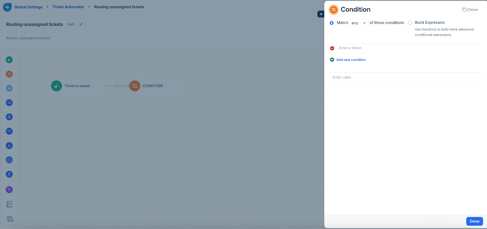 Define the conditions that should match the workflow by adding relevant condition(s), and click Done.