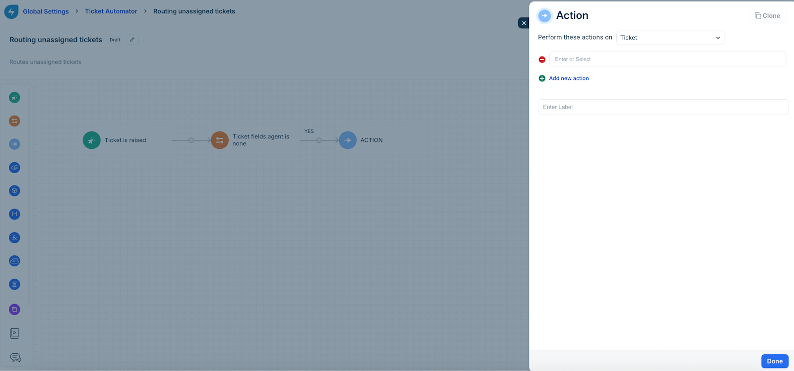Define what actions the workflow should perform by adding relevant actions, and click Done.