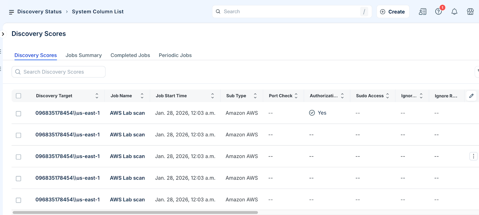 After you run discovery jobs in the Discovery phase, verify the results to confirm discovery accuracy and completeness. Freshservice provides multiple views to help you evaluate discovery outcomes at the job level, device level, and target level.