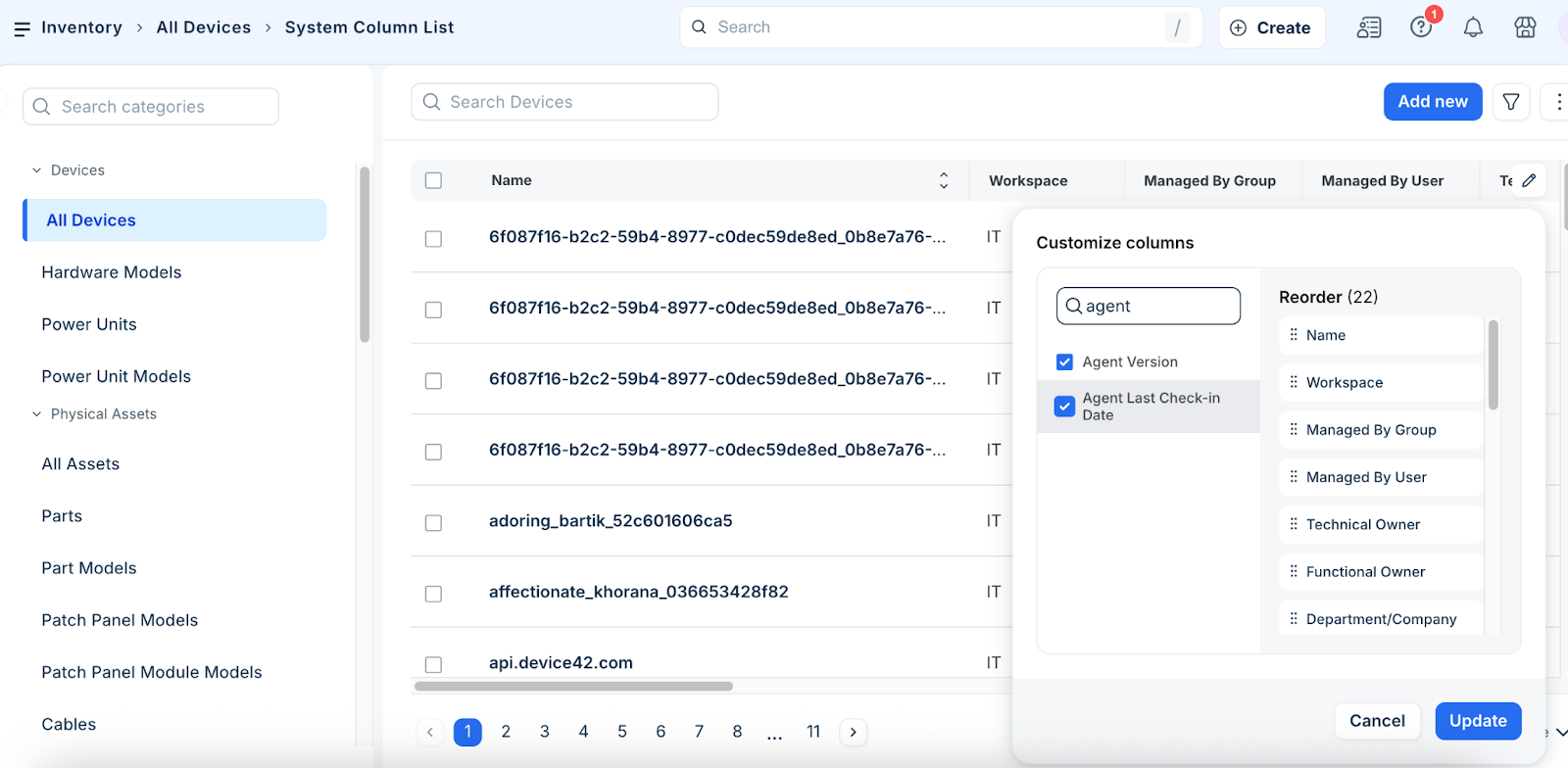 Select Agent Version and Agent Last Check-in Date from the columns dropdown menu.
