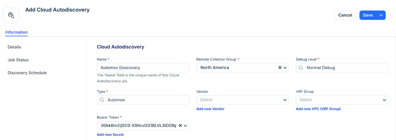 Select Cloud from the list of discovery jobs and click Add new.