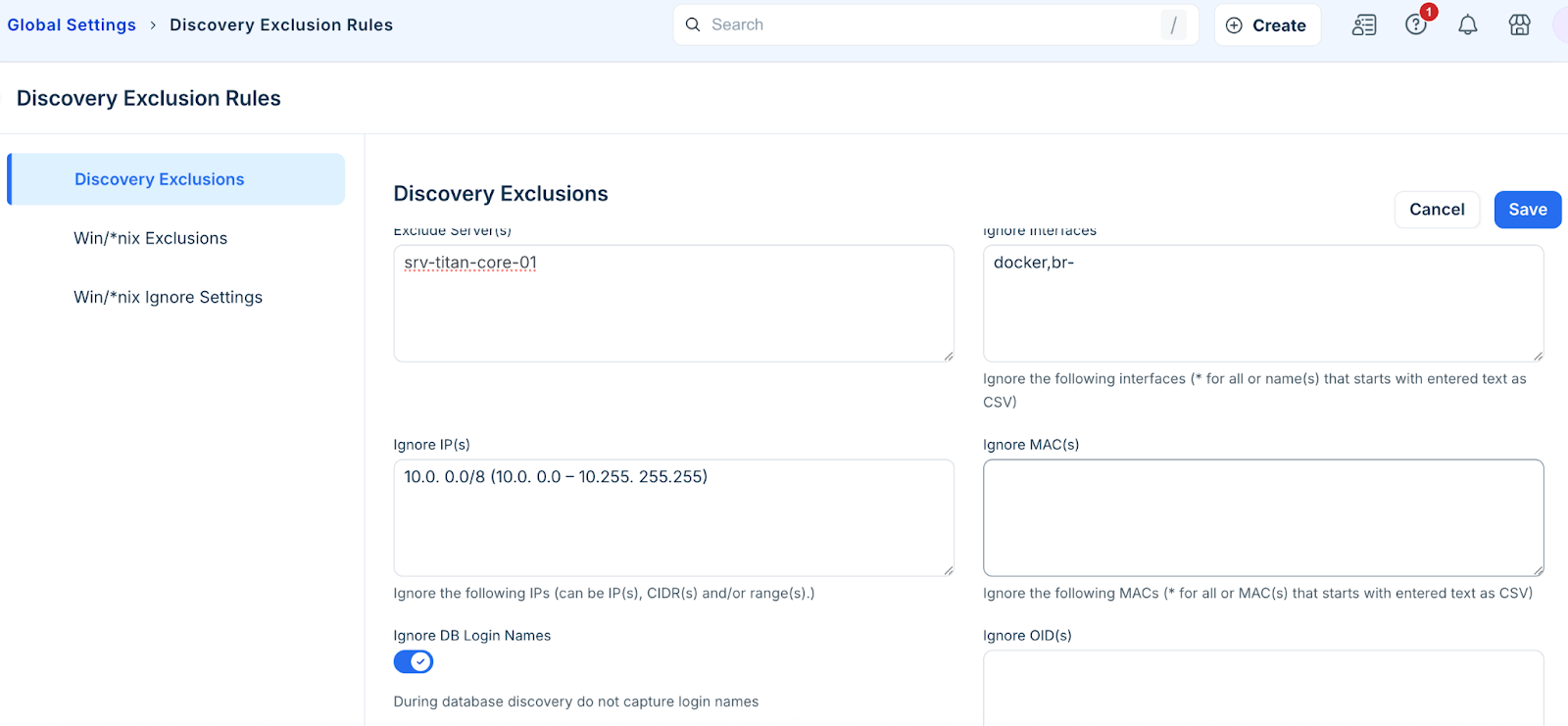 Configure discovery exclusions