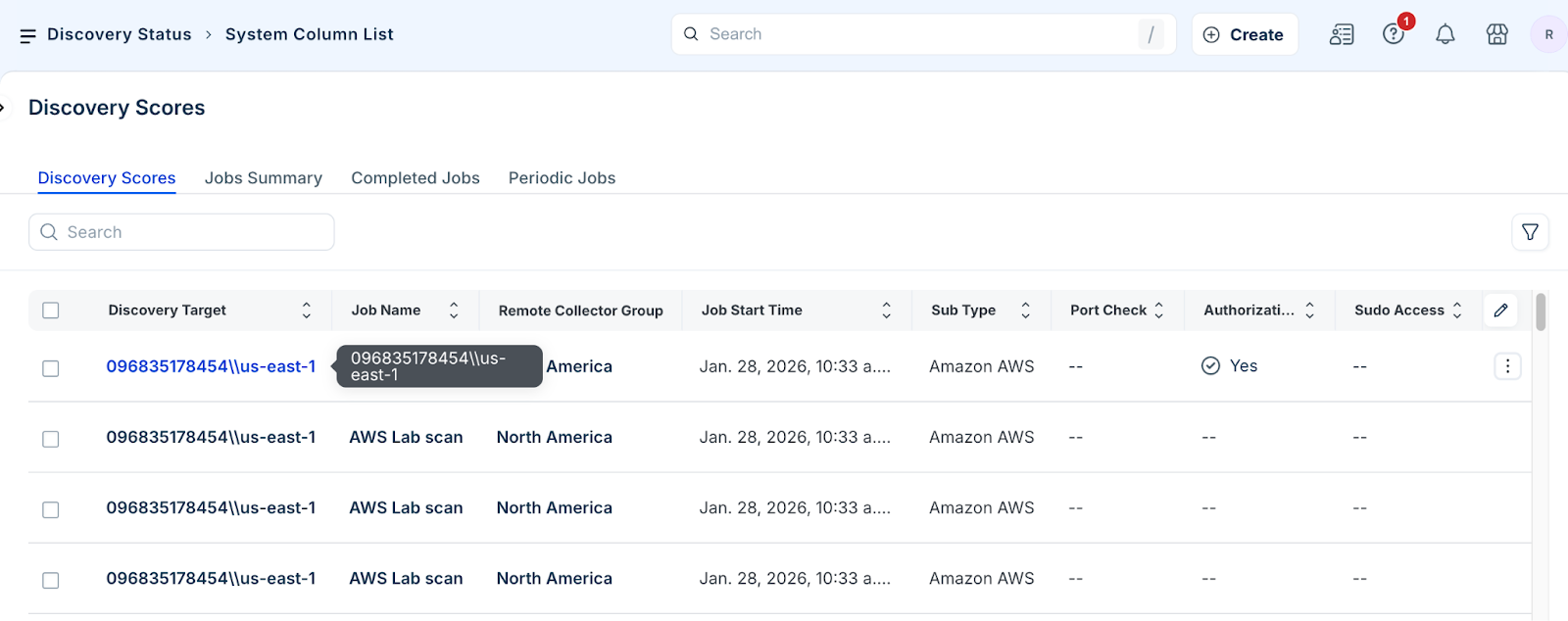 Click the target job in the Discovery Target column.