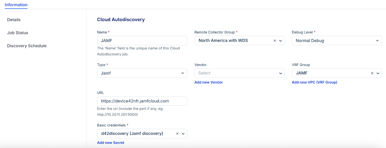 To configure a Jamf discovery job, follow these steps: