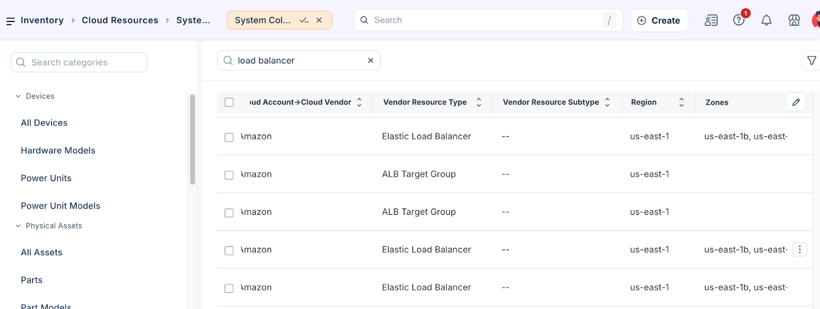 Use a filter to list the load balancer resources in the Vendor Resource Type column.