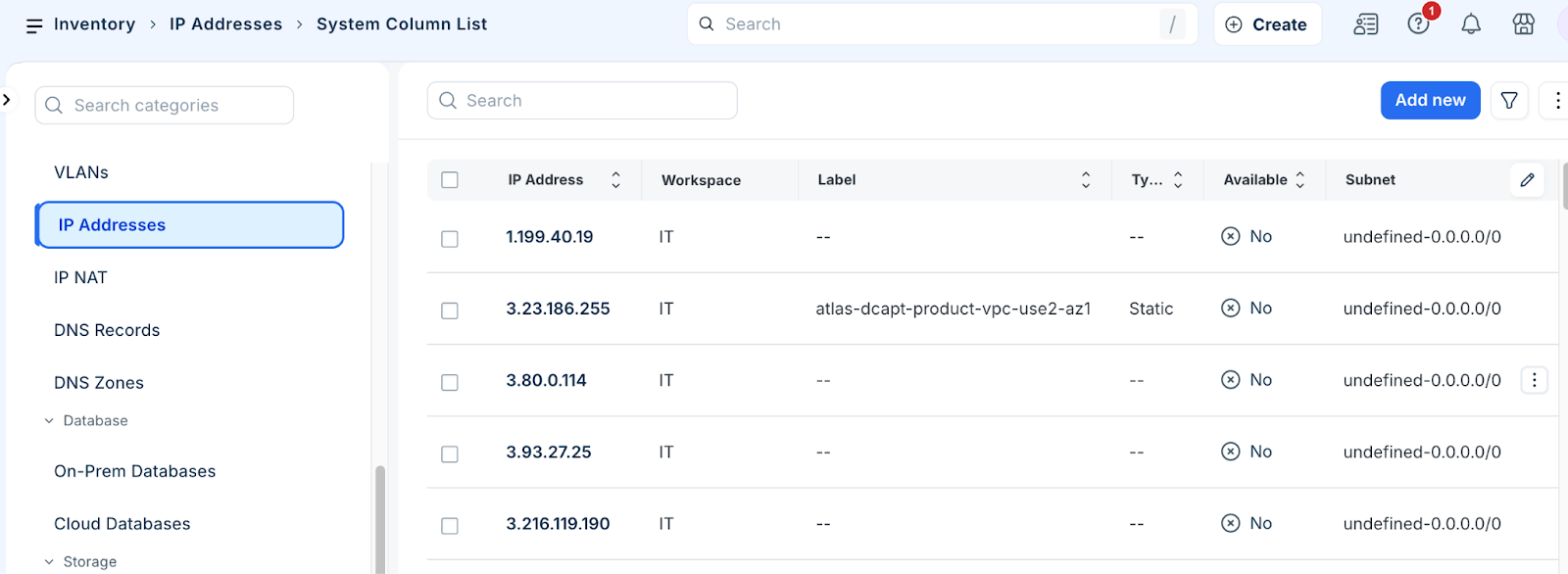 Use the available filters to narrow the list by specific IP values or subnets.